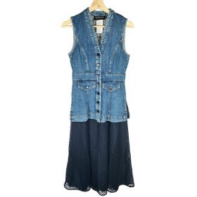 MASSIMO DUTTI Women’s Clothing 100% Linen Slim Dress, Waist Denim Blue Dress