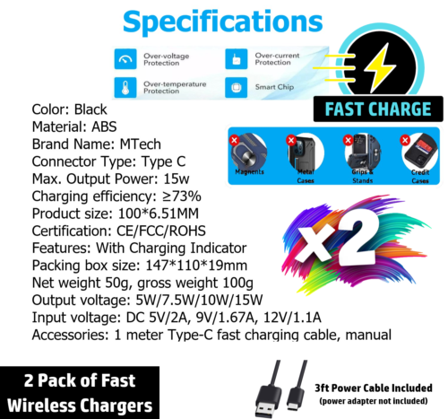 2 Pack Wireless Fast Charger Stand Dock Cradle for Apple iPhone Samsung Galaxy