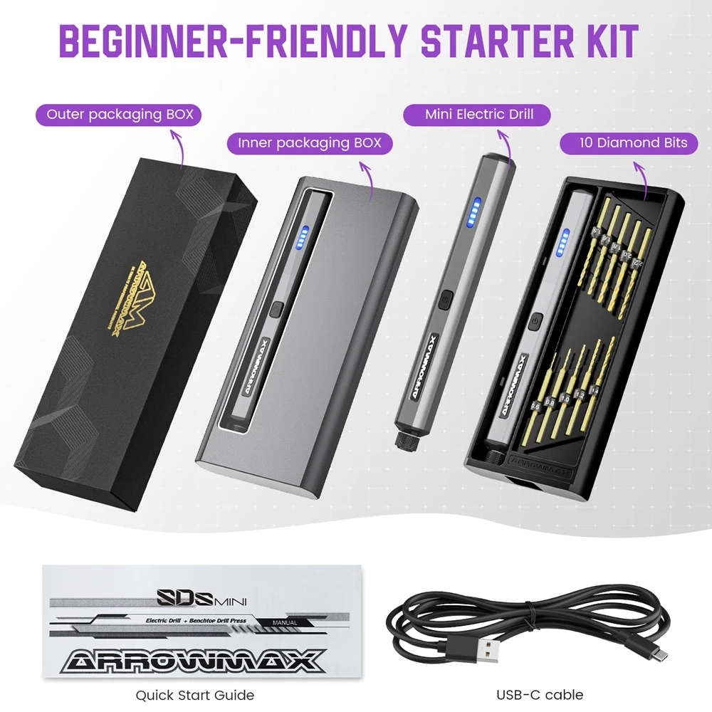 ARROWMAX Mini Electric Drill Rechargeable Rotary Tool Cordless Drilling for Crafts Wood Plastic Aluminium Jewelry Home DIY