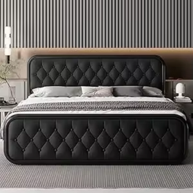 King Size Bed Frame with Faux Leather Headboard Bedroom Furniture
