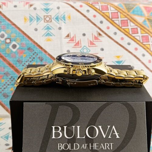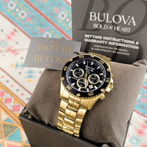 Bulova Marine Star Black Dial Gold Stainless Steel Men’s Quartz Watch 98B406 NEW