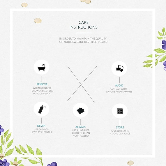 Although our jewelry ishigh quality with extra layers of coat for long-lasting, plated jewelry should be cleaned periodically. To extend the life of your jewelry, you must keep it dry (never bathe or spray perfume on your jewelry, chemical reactions with chlorine and other elements such as perspiration can lead to tarnishing). Remove jewelry when sleeping, exercising, or doing physical activities, as prolonged contact with sweat will cause the plating to wear away faster. Never use abrasives chemicals or products to clean your jewelry. After each wear, gently wipe each piece of jewelry clean of makeup and skin oils with a soft, lint-free cloth to avoid scratching. Since rose gold pieces are more sensitive because of copper usage (to turn the color from gold to rose gold), please care as instructed above.