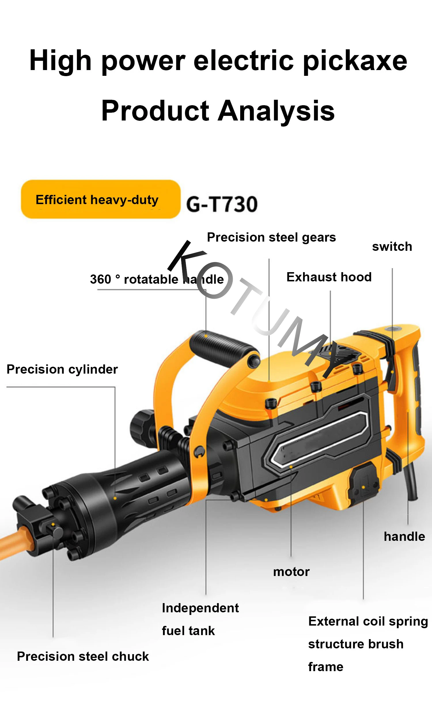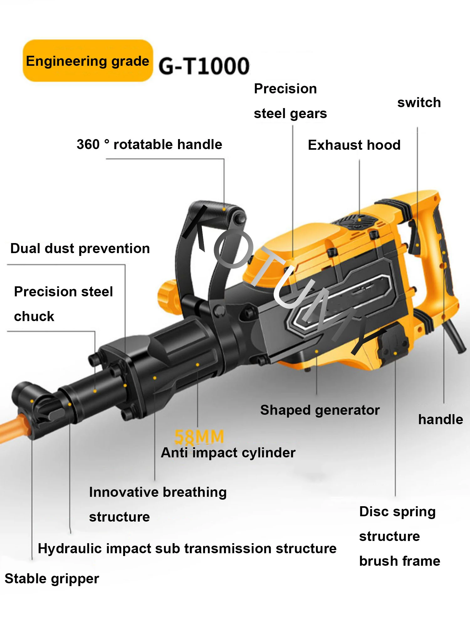 Demolition Jack Hammer 2050bpm Concrete Breaker 3PCS Chisels 98 J Electric Hammer Pick Trenching and Breaking Holes 220V 4600W