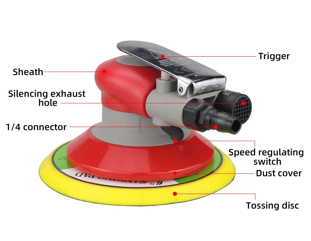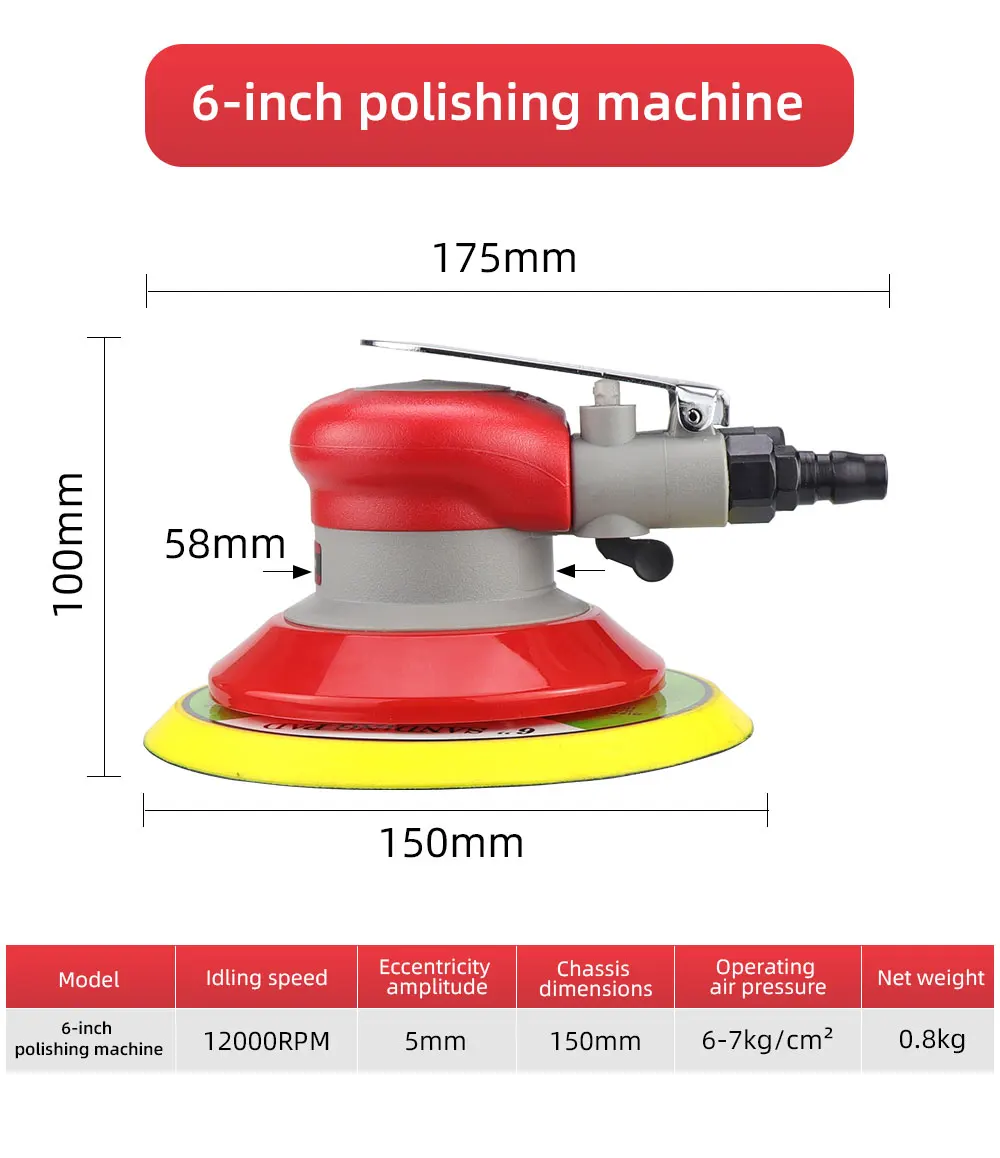 HIFESON 5/6 inch Pneumatic Air Orbital Sander 125/150mm Air Sanding Machine Polisher Air Tool Car Woodworking Metal Polishing