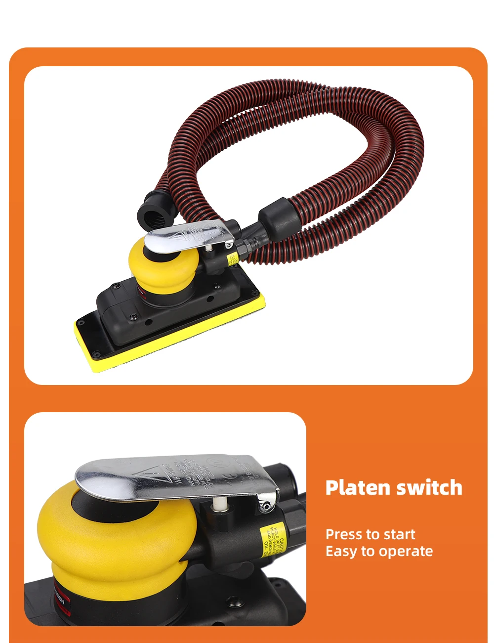 HIFESON 70x198mm Pneumatic Orbital Sander 98A Air Sander Polishing Vacuum Rectangular Sanding Machine For Metal Car Polishing