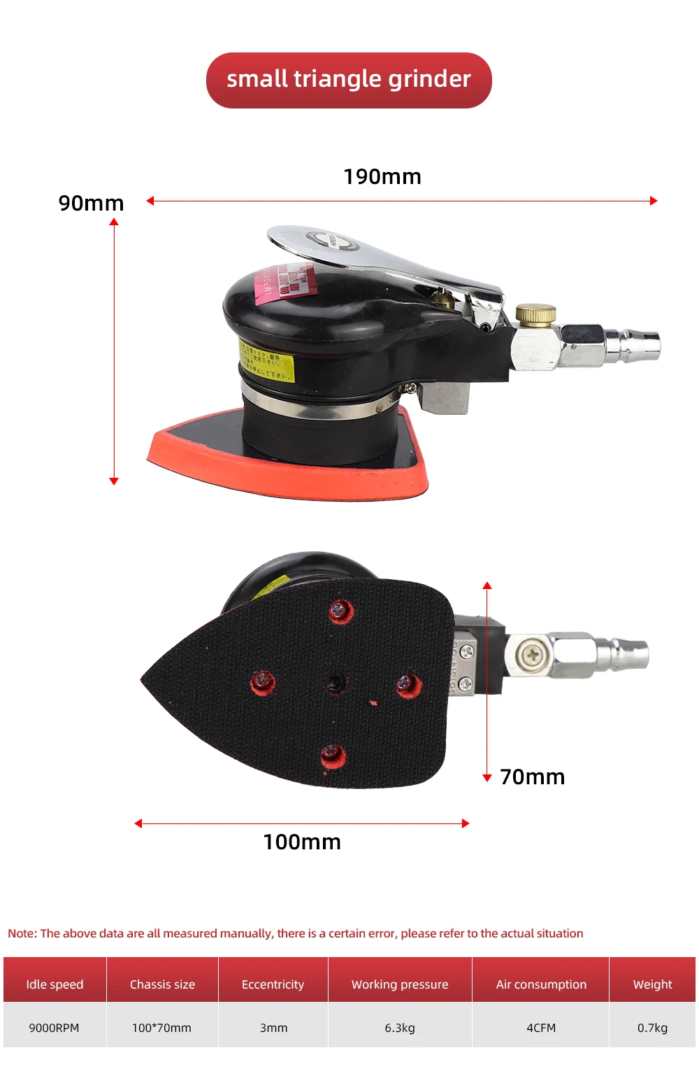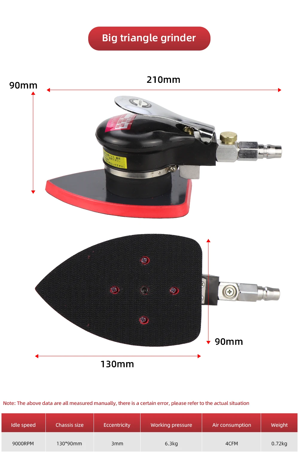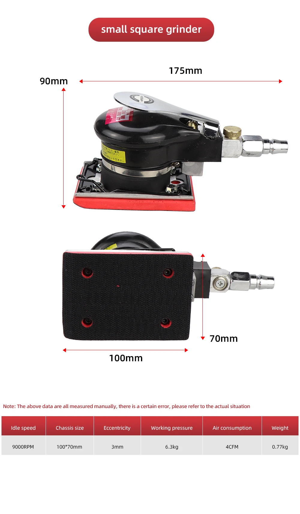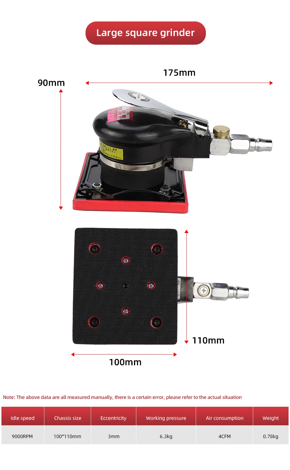 Black Pneumatic Orbital Sander Air Grinder 70X100mm 100X110mm 90X130mm Hardened Steel Core Eccentric Polishing Grinding Machine