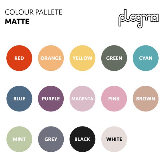 | Primary color | Black, Blue, Brown, Green, Gray, Orange, Pink, Purple, Red, White, Yellow, Magenta, Cyan, Mint |