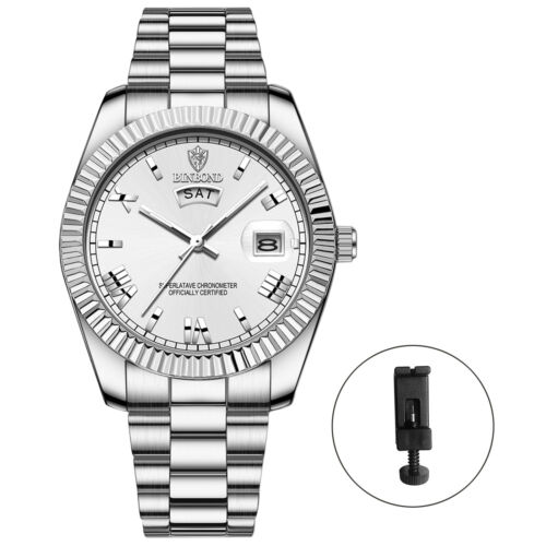 Men’s Business Stainless Steel Waterproof Quartz Wrist Watch Luminous With Date