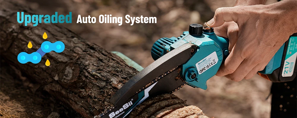 【TRONÇONNEUSE AMÉLIORÉE DE 8 POUCES】 Cette mini tronçonneuse est équipée d’une lubrification du réservoir d’huile. La chaîne peut être autolubrifiante, ce qui réduit la résistance au frottement sur la chaîne d’entraînement lors de l’utilisation d’une tronçonneuse sans fil pour des coupes en douceur. À une vitesse de tronçonneuse de 16,4 pi/s, il ne faut que 10 secondes pour couper une bûche de 6 pouces de diamètre, comme pour trancher du beurre.