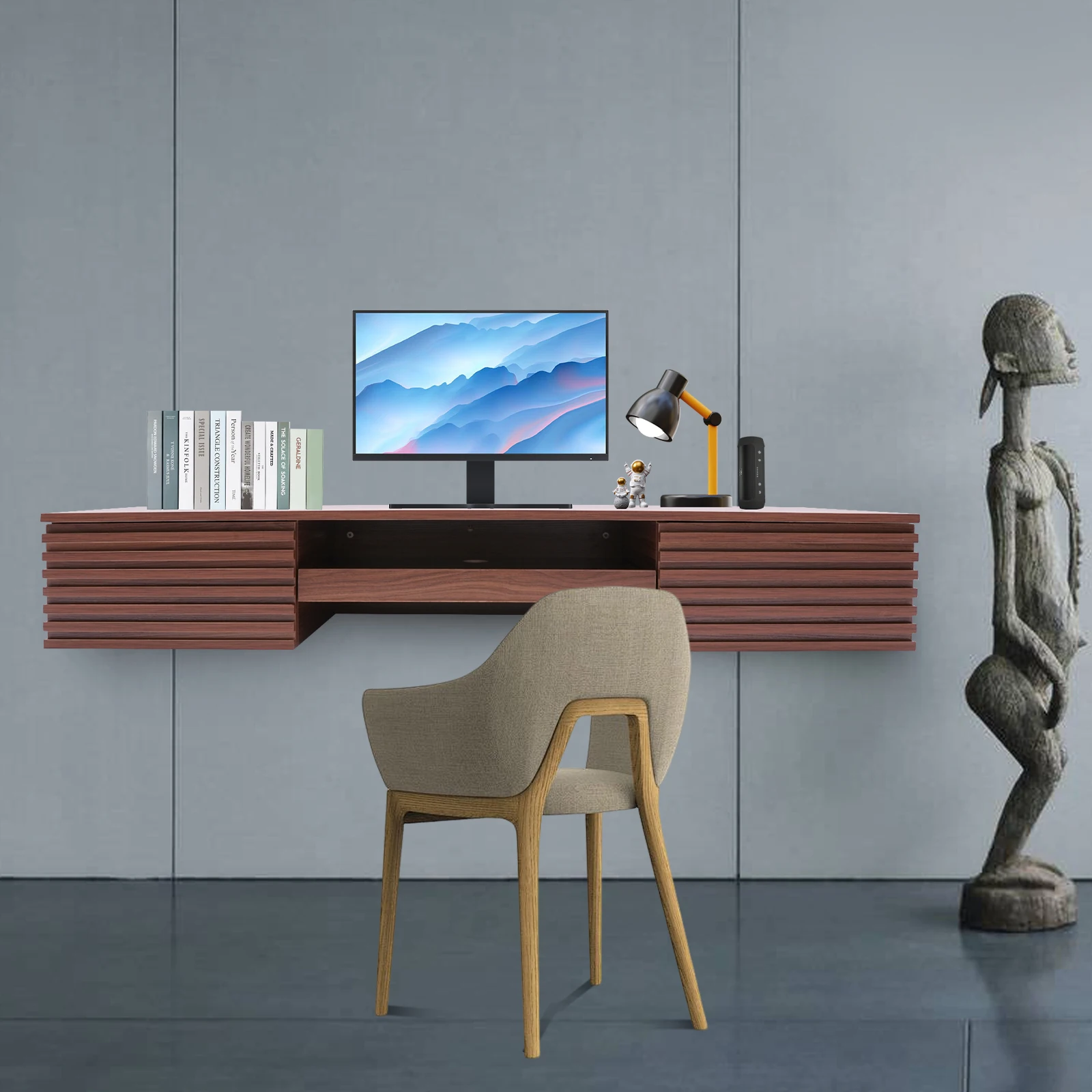 This wall-mounted desk, with its thoughtful design of space optimization, has become an ideal choice for modern home and compact office environments. It cleverly fixes the desktop to the wall, not only saving floor space but also bringing unprecedented cleanliness and order to limited living or working areas. High-quality materials ensure stability and durability, and the streamlined design balances aesthetics and practicality, easily integrating various decoration styles.