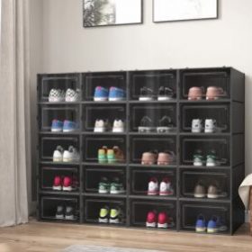 Glass Door RGB LED Shoe Box 3 Layers Shoe Storage Cabinet Organizer Stackable