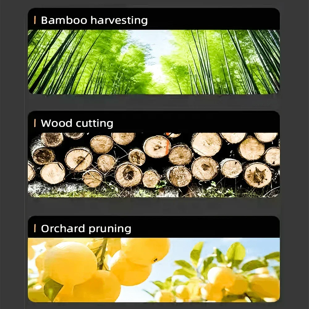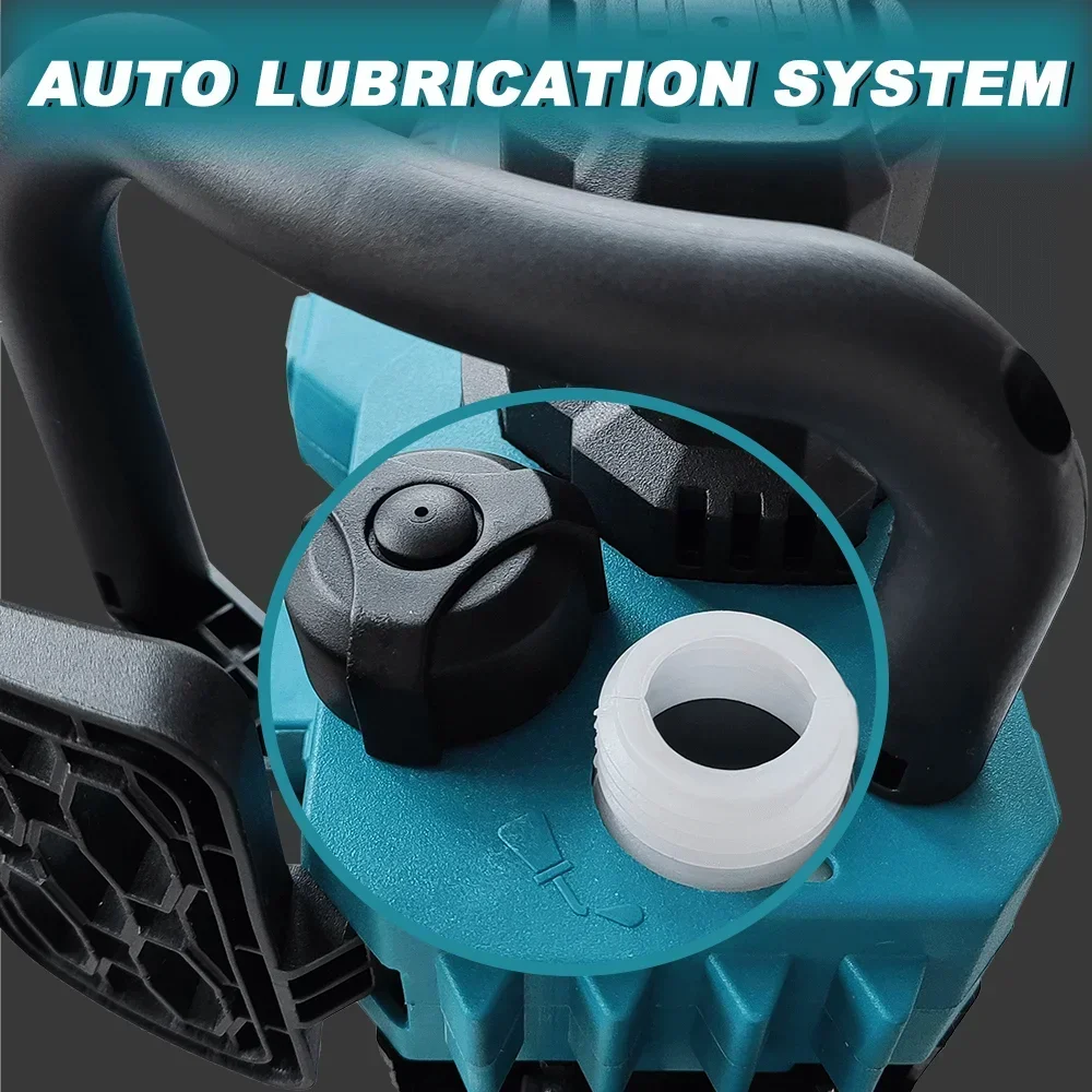 2.【Convenient Automatic Lubrication System】: This cordless electric saw is equipped with an automatic chain lubrication system. With this system, you don’t have to manually oil the chain, the chain saw automatically lubricates the chain during operation, ensuring smooth cuts and reducing wear.