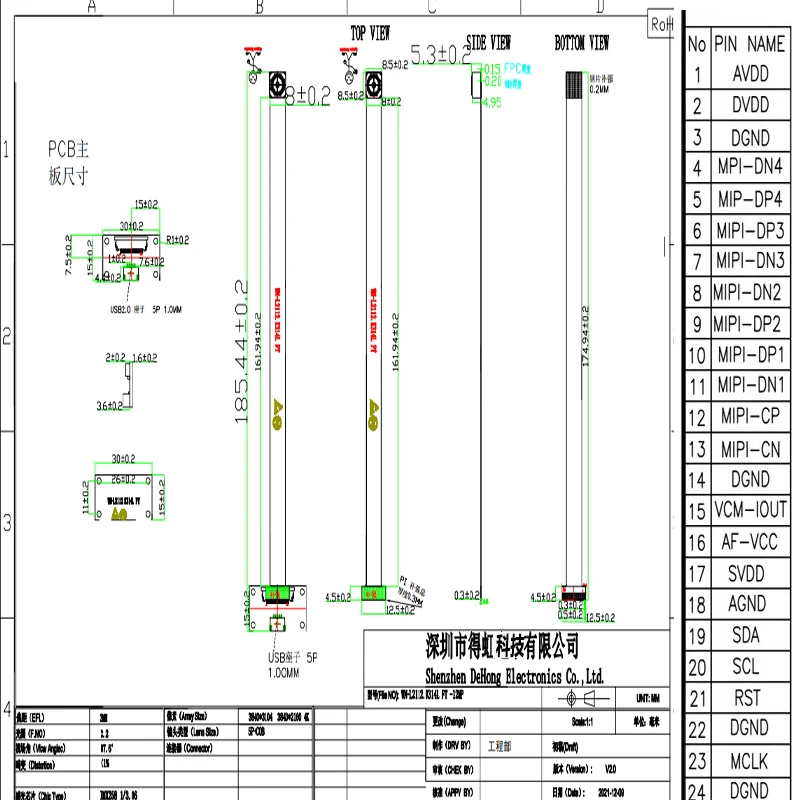 12MP 4K CMOS IMX258 Cable Camera Module 3840*2160 30Fps AF/FF Wide Angle MJPEG, YUY2