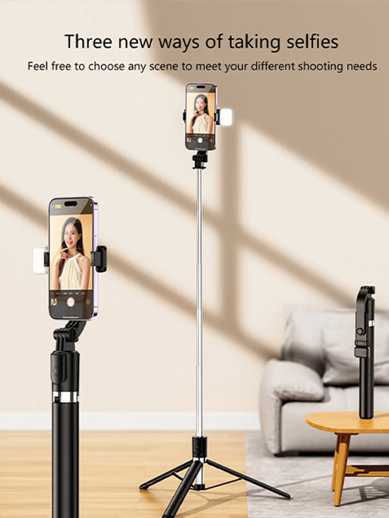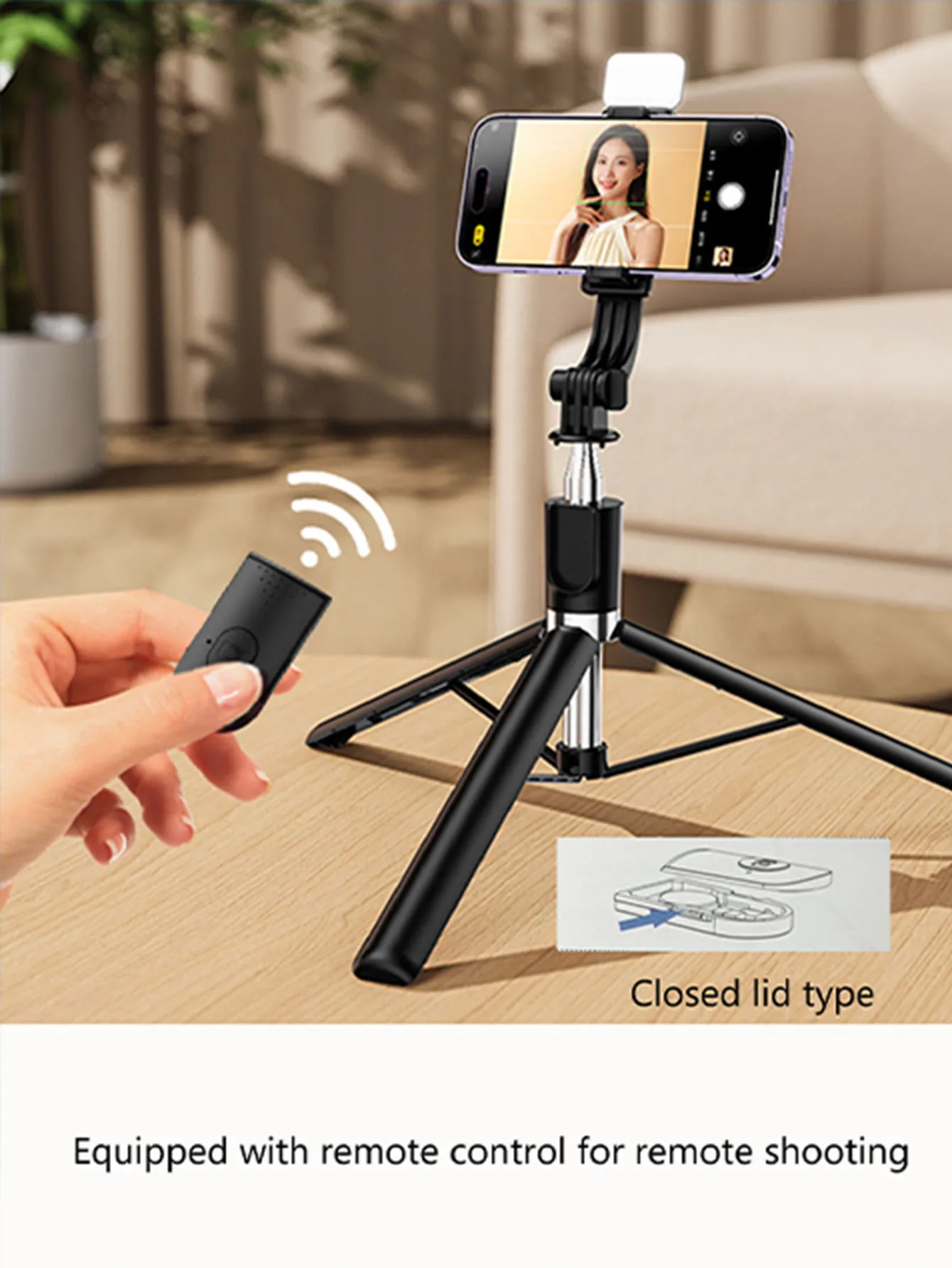 170cm/67inch Selfie Stick Tripod, With fill light, Extendable Aluminum Tripod With Bluetooth Remote,Compatible With lPhone And A