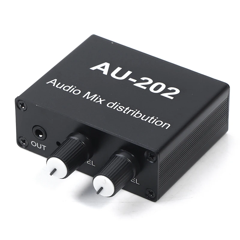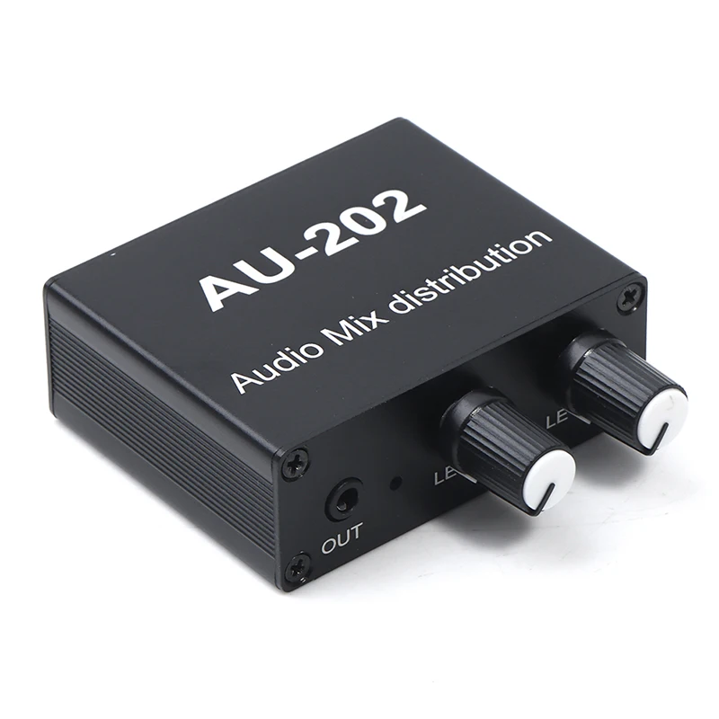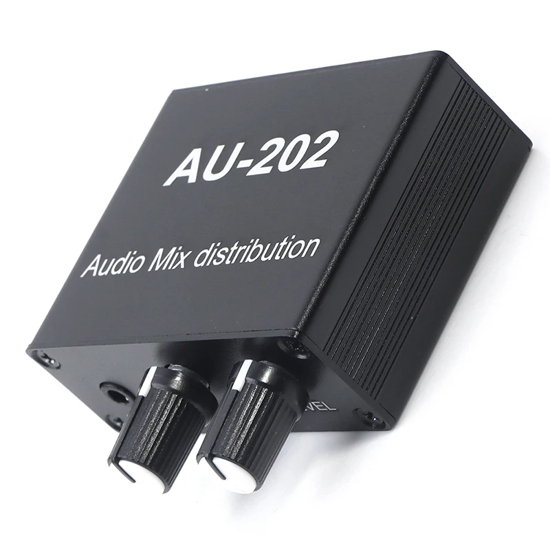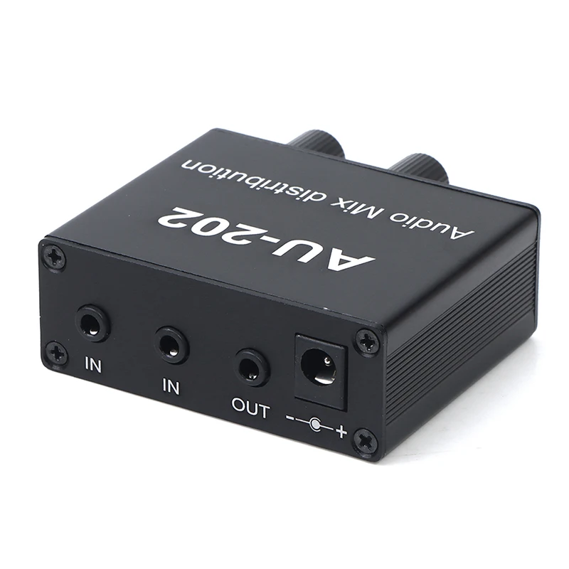 1PC Stereo Mixer Audio Distributor For Headphone External Power AMP Volume Independent Control DC5-19V 2 Inputs 2 Outputs AU 202