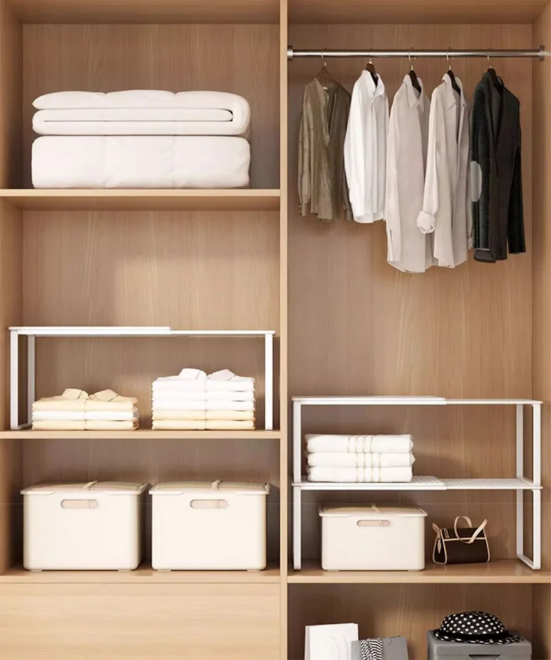 1pc Wardrobe Scalable Layered Partition Board Stackable Large-capacity Shelf Shoe Cabinet Sorting Board Wardrobe Organizer