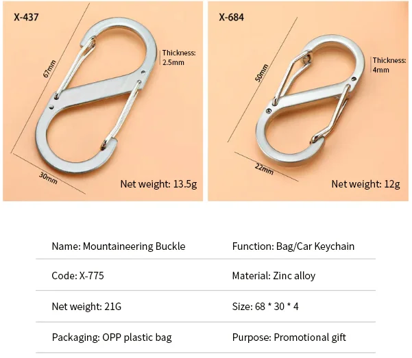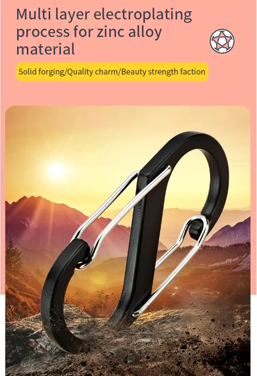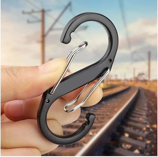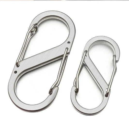 1pcs Stainless Steel S Type Carabiner with Lock Mini Keychain Hook Anti-Theft Outdoor Camping Backpack Buckle Key-Lock Tool
