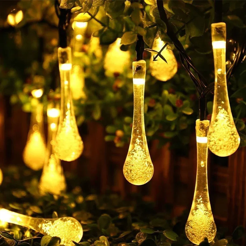 5-12m Water Droplets Solar String Lights Waterproof Outdoor Decoration Garland Fariy Lights Christmas Wedding Party Garden