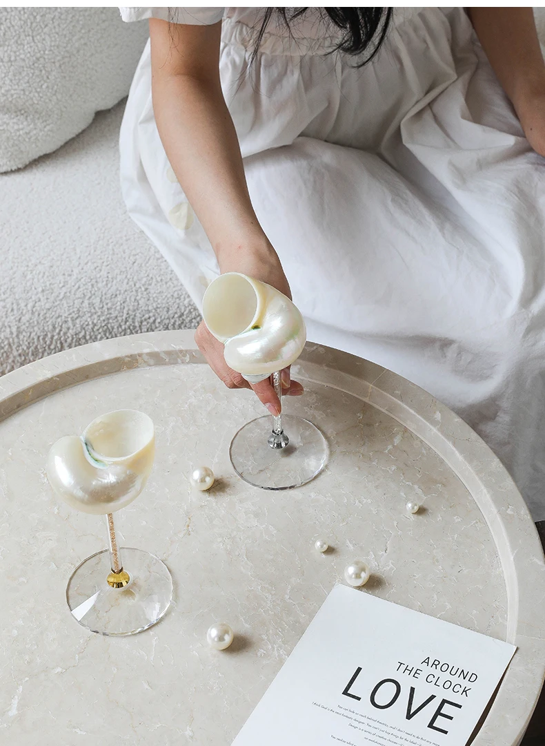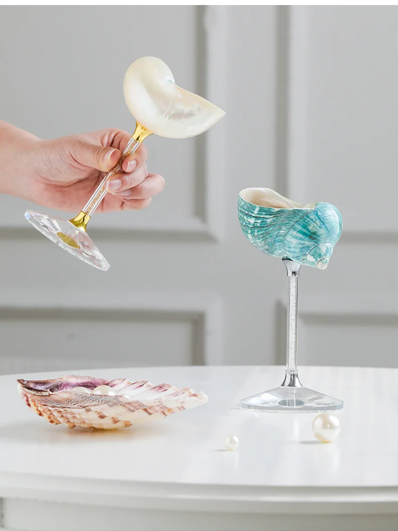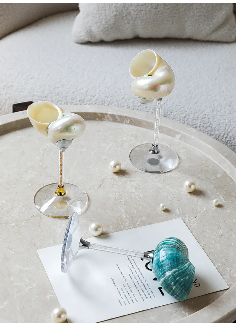 Ahunderjiaz-Natural Conch Shell Goblet Glass, Champagne Wine Glass, Kitchen Drinkware Set, Home Decoration Ornaments, Light Luxu