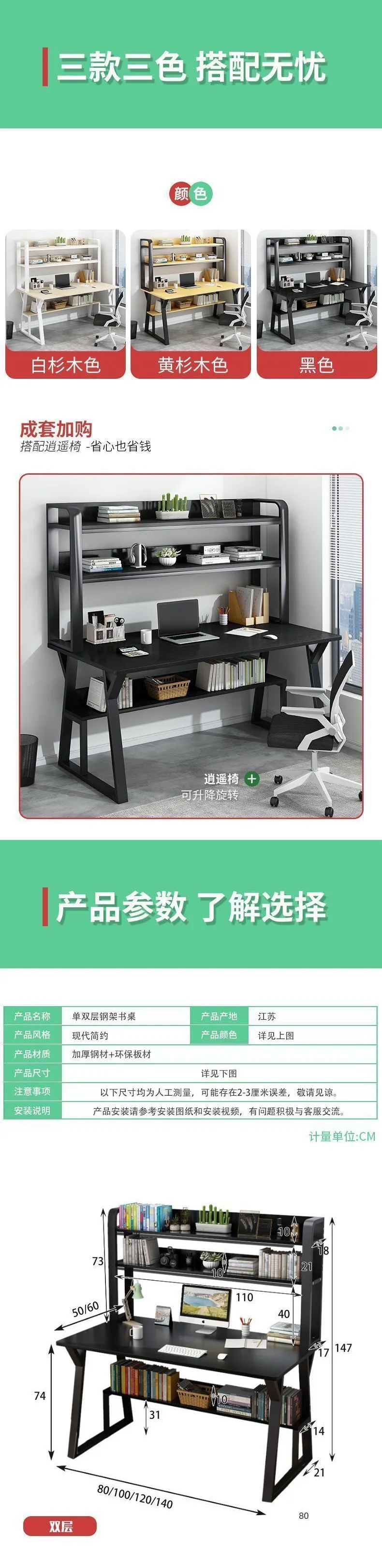 AOLIVIYA Computer Desk Bookshelf Combination Integrated Desktop Home Simple Study Table Bedroom Student Simple Writing Tabl