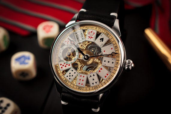 Casino watch Poker watch Handmade watch Skeleton watch Steampunk watch Marriage watch Skeleton mechanical Gift for men Gift for husband