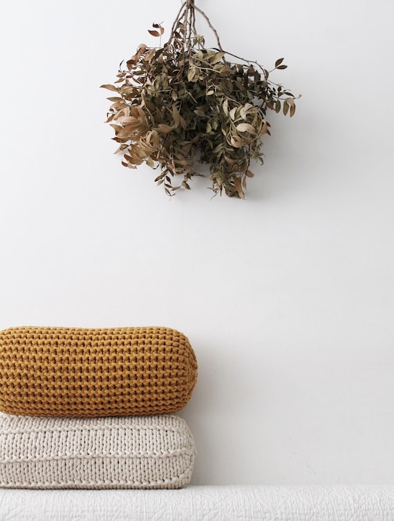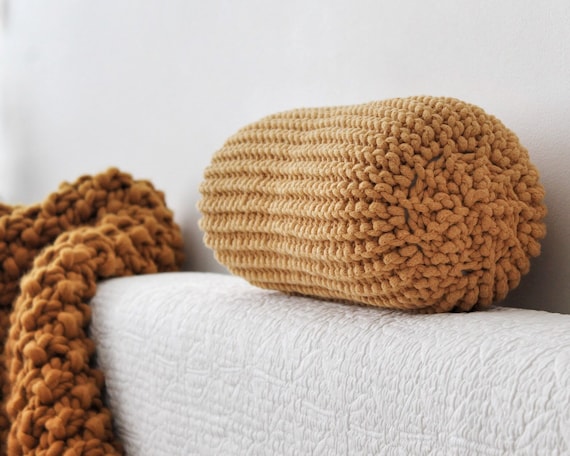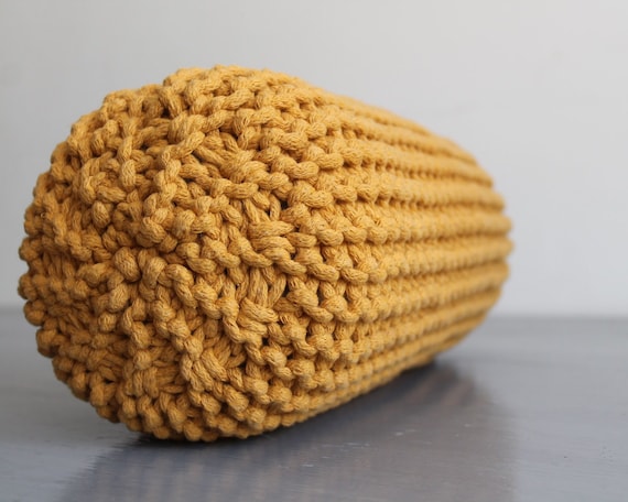 Chunky Knit Bolster Pillow: Recycled Cotton Mustard Neck Cushion