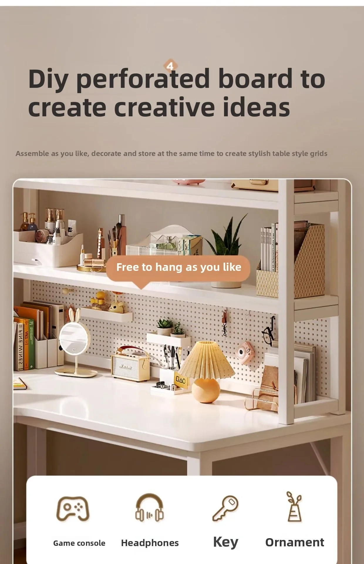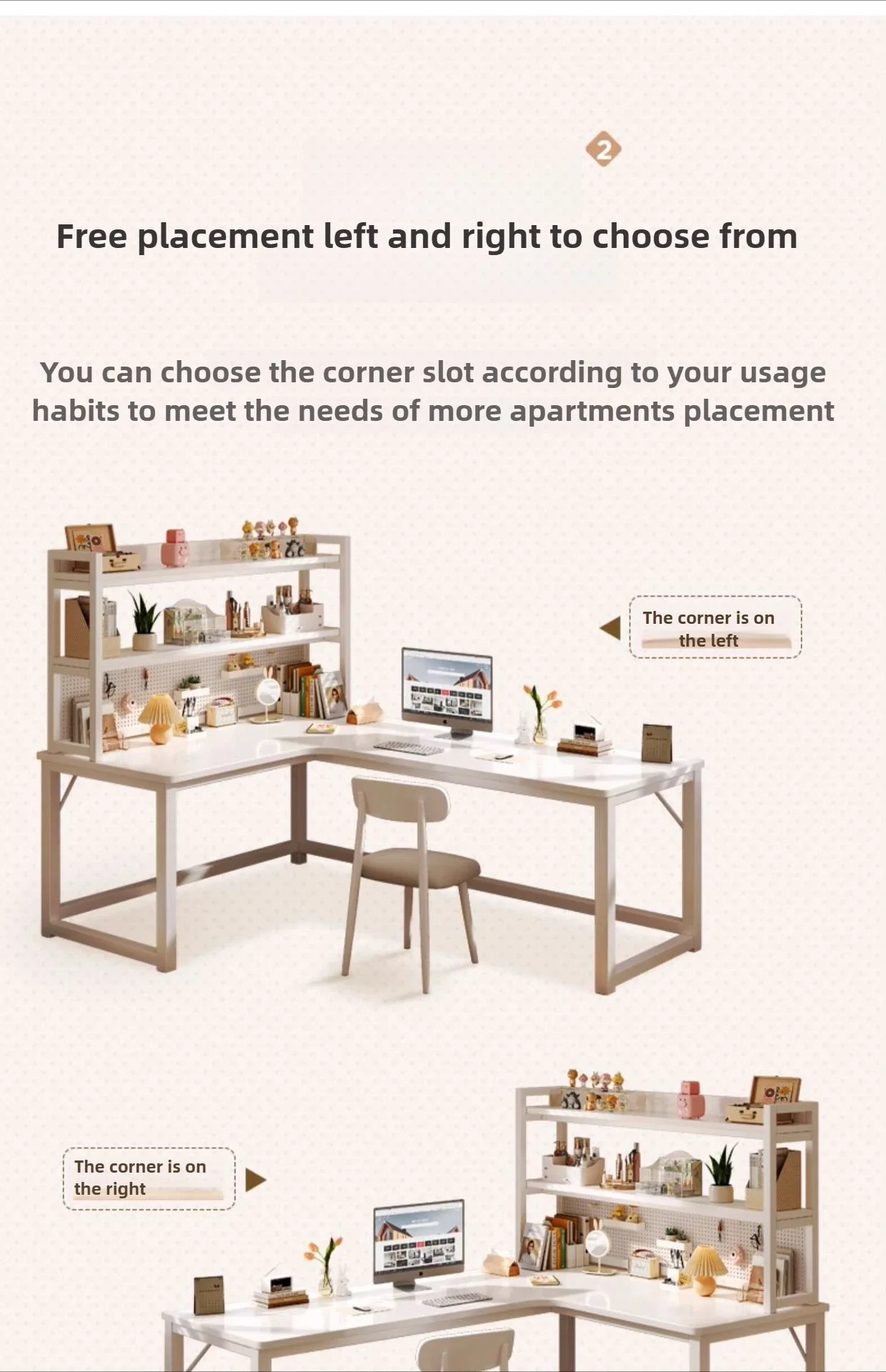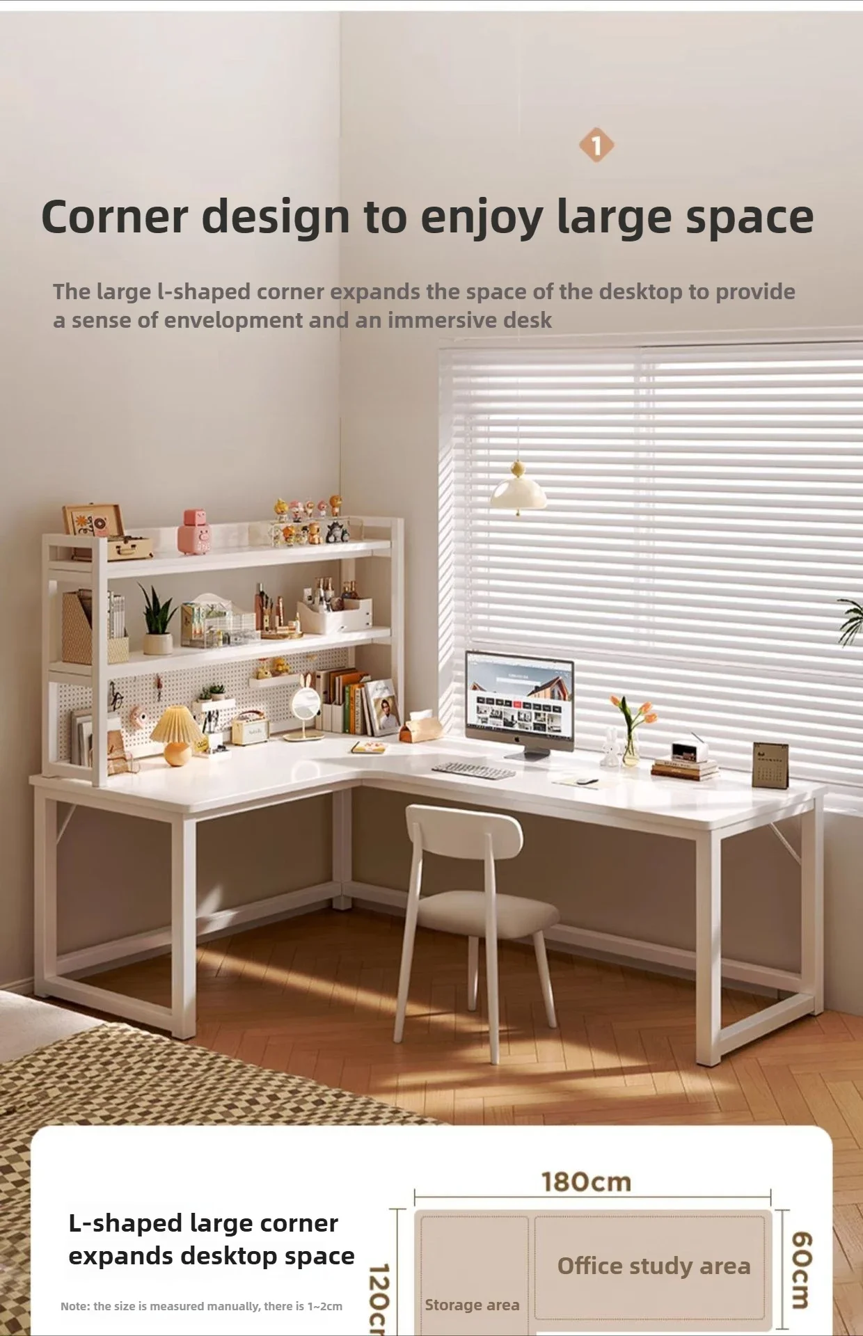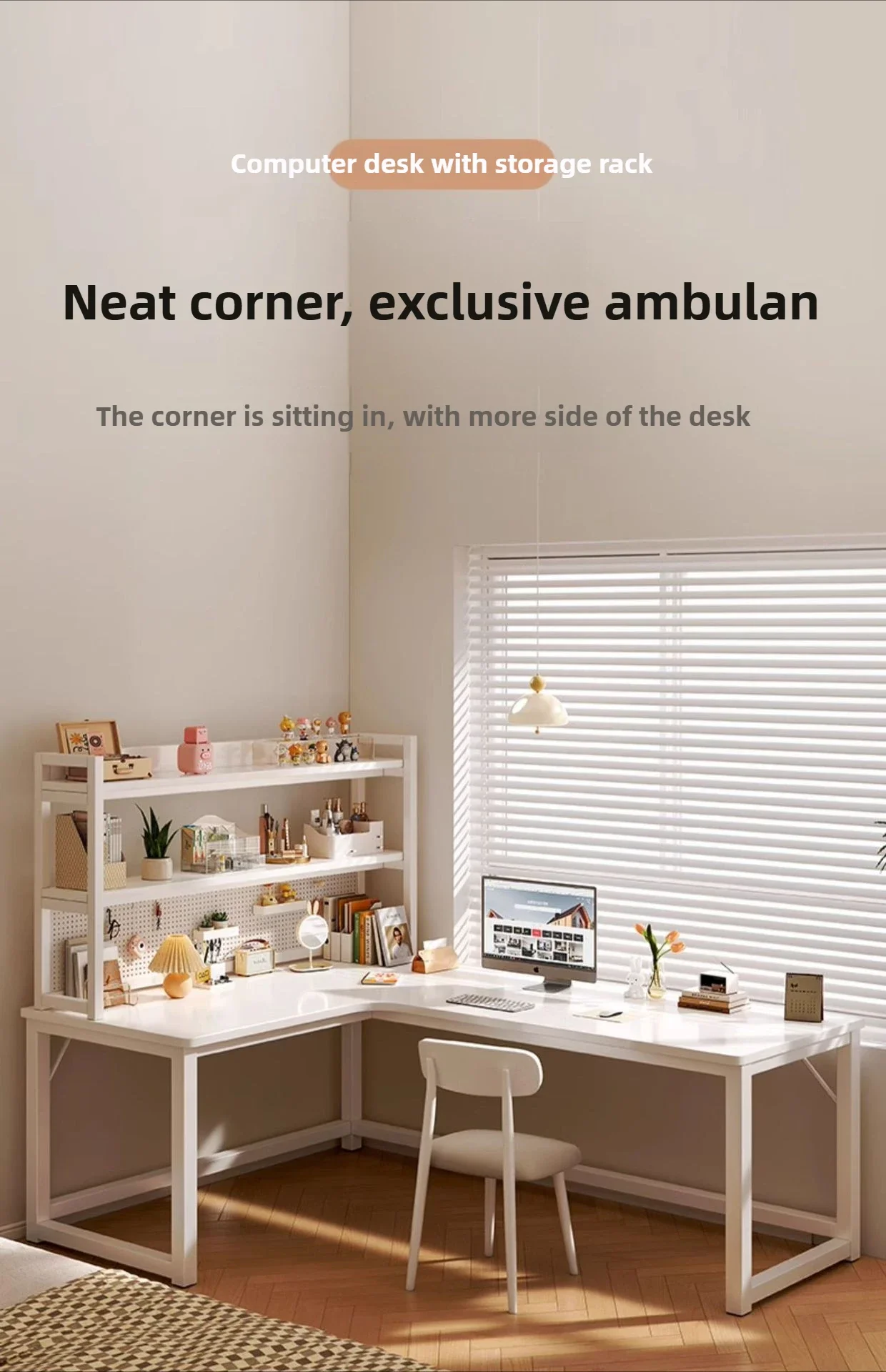 Cream Style Solid Wood Corner Home Learning Desk Bookshelf Integrated Corner Perforated Board Desktop Computer Desk