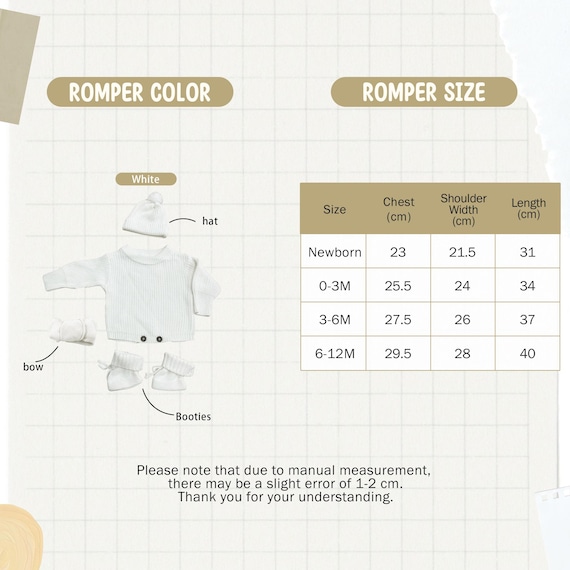 | Set Options | Romper Only, Romper + Bow, Romper + Hat, Romper + Booties, Romper+Bow+Booties, Romper+Hat+Booties, Four All Set, blank |