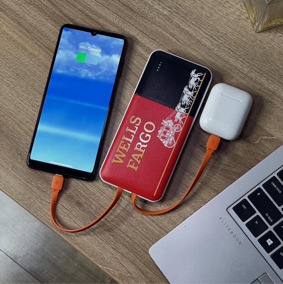 Custom Power Bank, Company Logo Corporate Gifts, Engraved Portable Charger with Cord, Promotional Items, Business Gift for Men Phone Charger