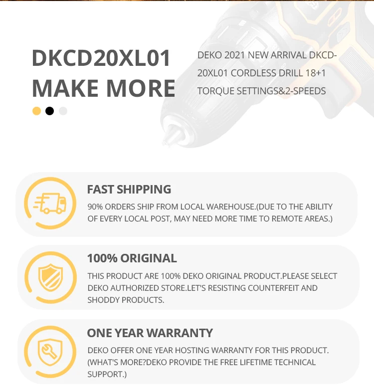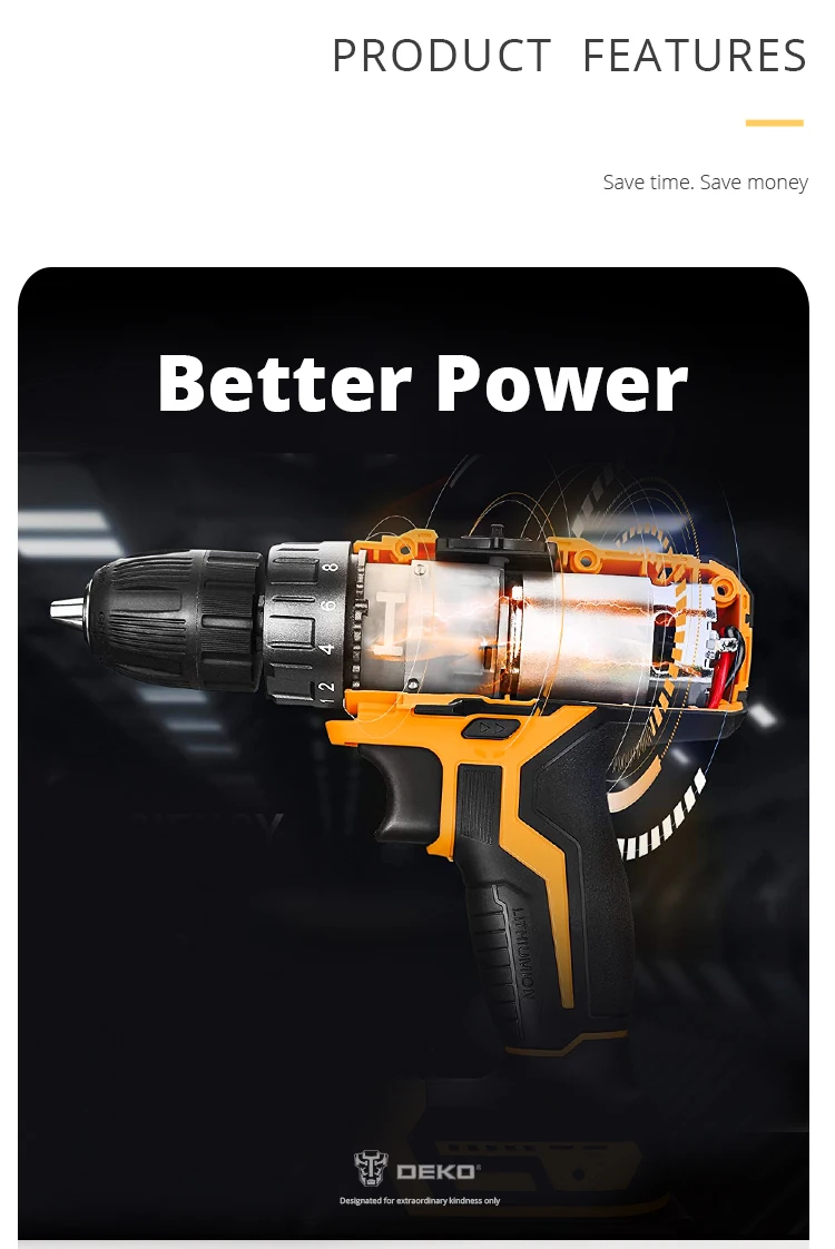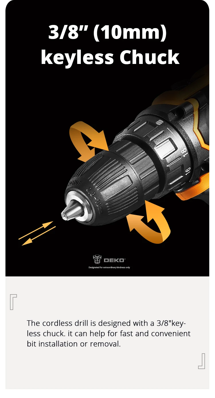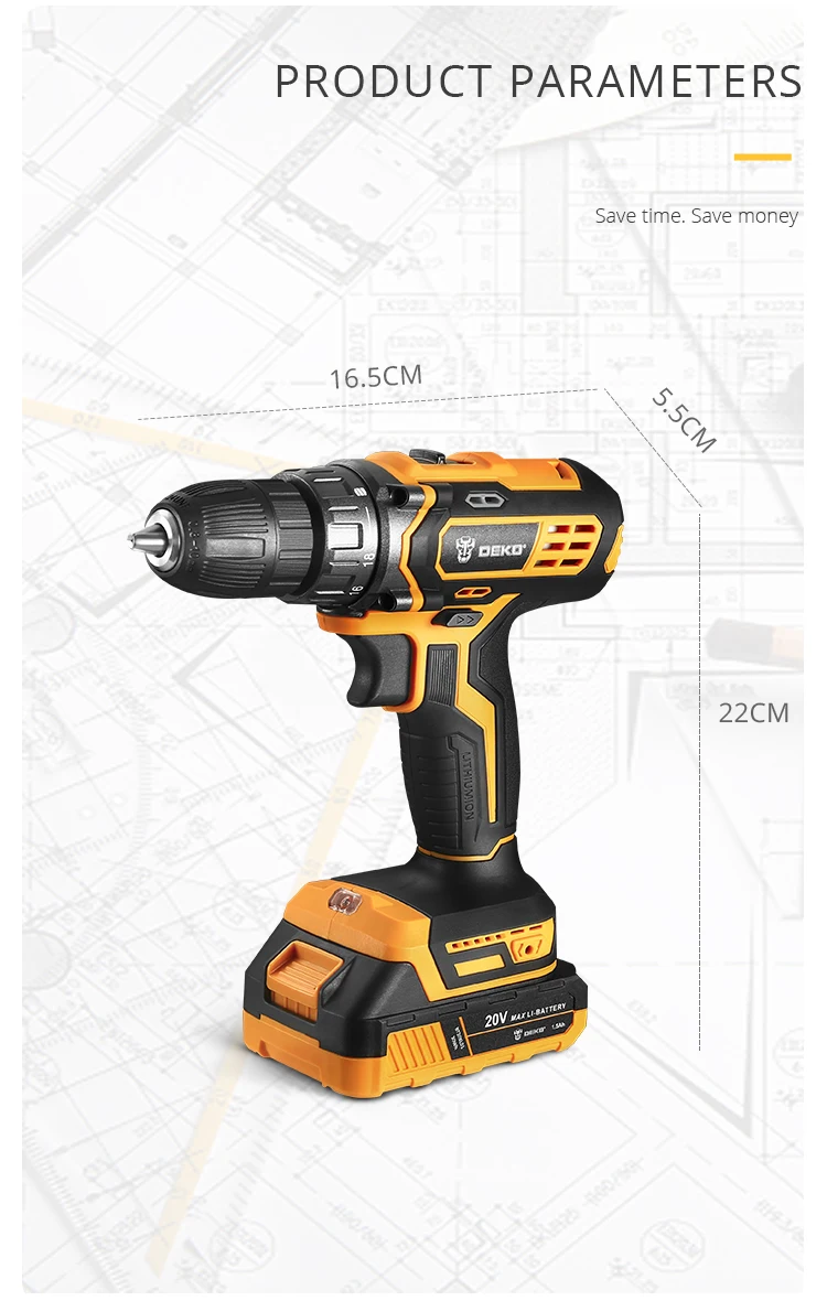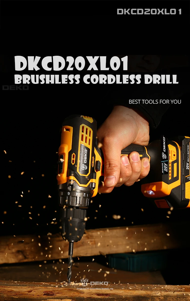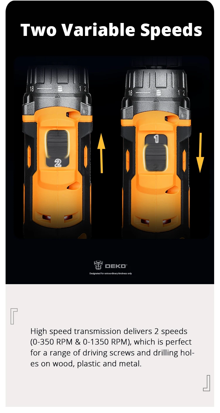DEKO 20V Cordless Drill 2 Speed Rechargeable Electric Screwdriver Lithium Battery Household Multi-function Power Tools