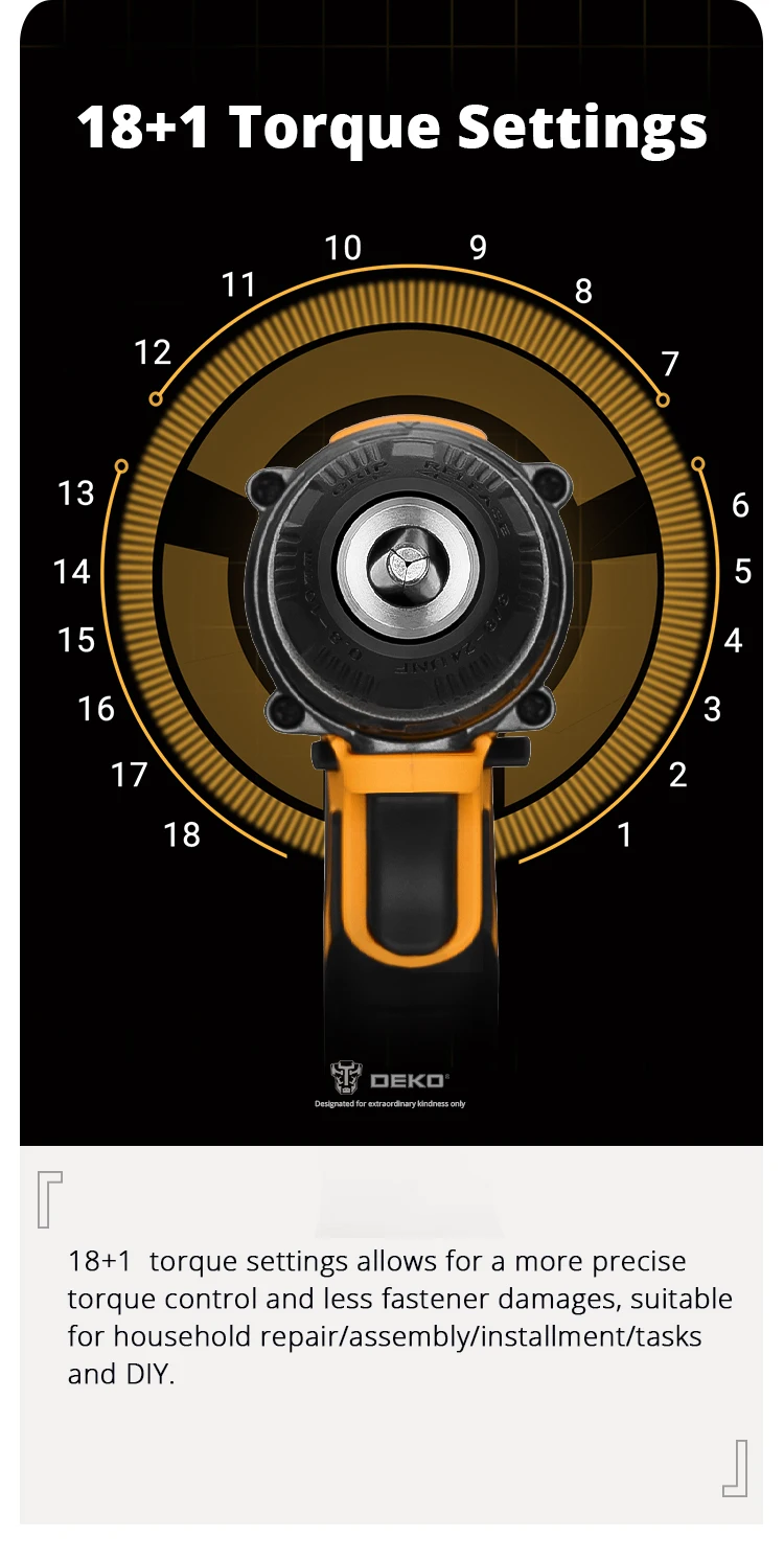 | Torque Settings | 18+1 Settings |