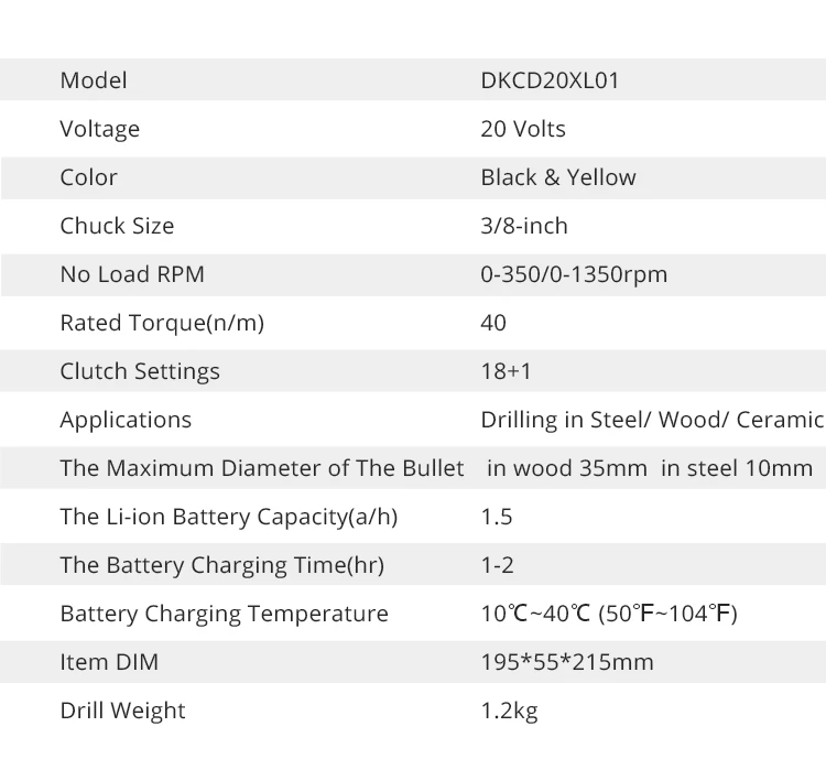 | Model Number | DKCD20FU-Li/DKCD20XL01 |