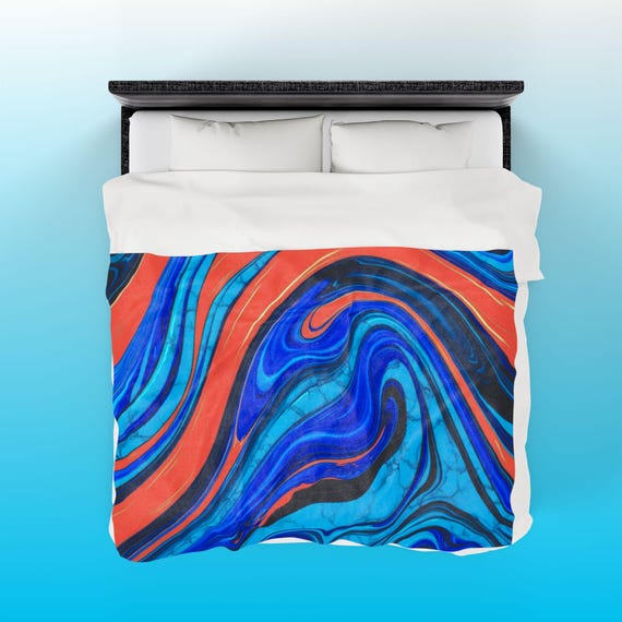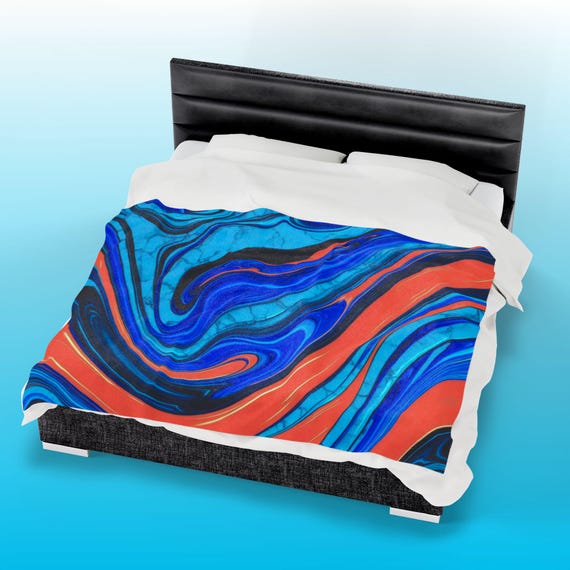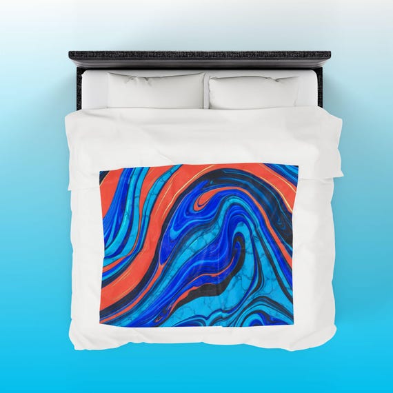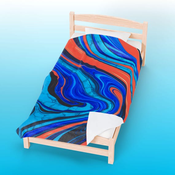 ๐น Electric Blue & Orange Marble Velveteen Plush Blanket – Abstract Art Throw for Modern Home Decor & Cozy Comfort ๐น