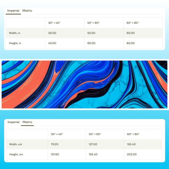 | Size | 30" ร 40", 50" ร 60", 60" ร 80" |