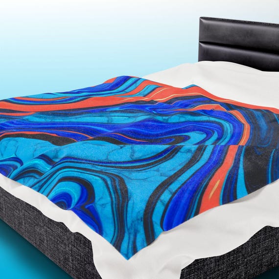 ๐ Bring an artistic touch to your space with this mesmerizing neon blue, phosphorescent blue, and turquoise marbled plush blanket! Enhanced with bold strokes of vibrant orange, this abstract expressionist design radiates contemporary elegance and energy. A perfect fusion of modern art and home comfort, this soft and luxurious throw adds an eye-catching statement to any living room or bedroom.