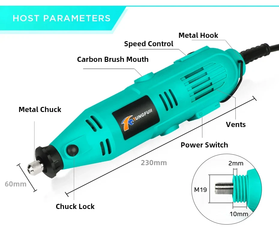 Compatible with accessories of different specifications.By changing the chuck, you can clamp 0.5-3.2mm accessories.