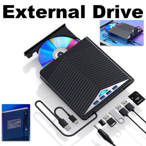 External CD DVD Drive for PC Laptop Windows 11 10 USB 3.0 Burner Reader Writer
