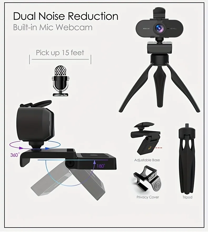 Full HD 1080P Computer Webcam with Microphone Voice Call Conference Live Camera Privacy Cover Stand Game Banding live Web Camera