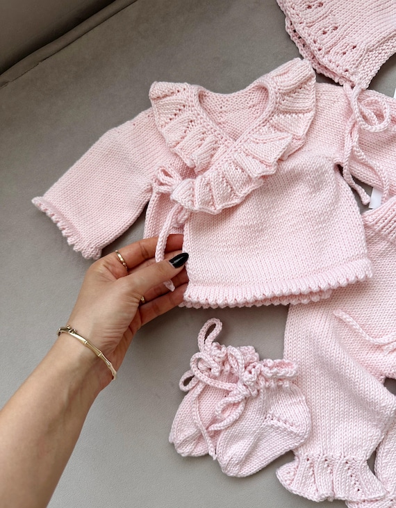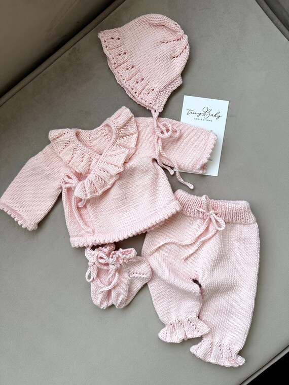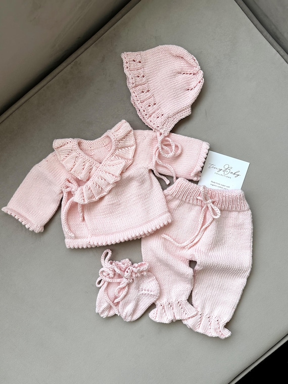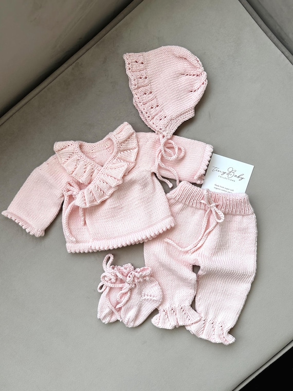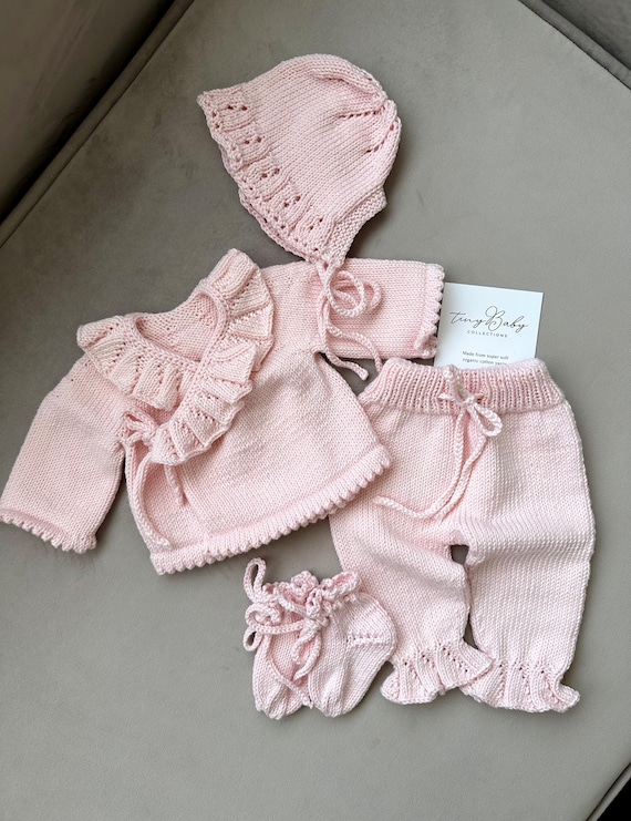 Newborn Girl Coming Home Outfit, Baby Girl Coming Home Outfit, Knitted Newborn Outfit, Organic Cotton Baby Clothing Set