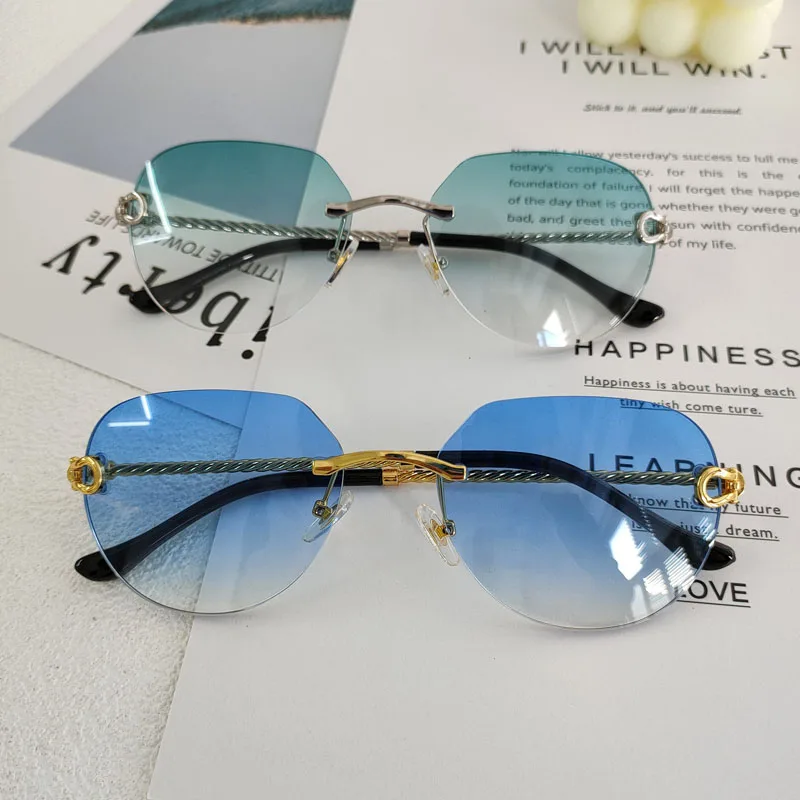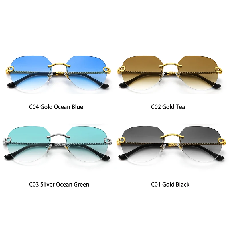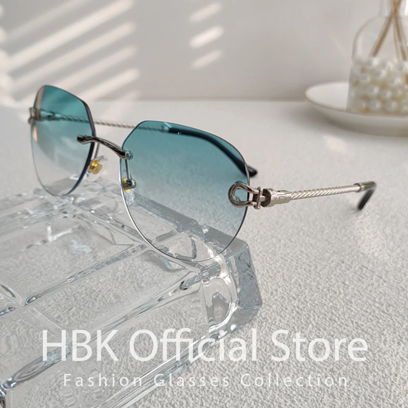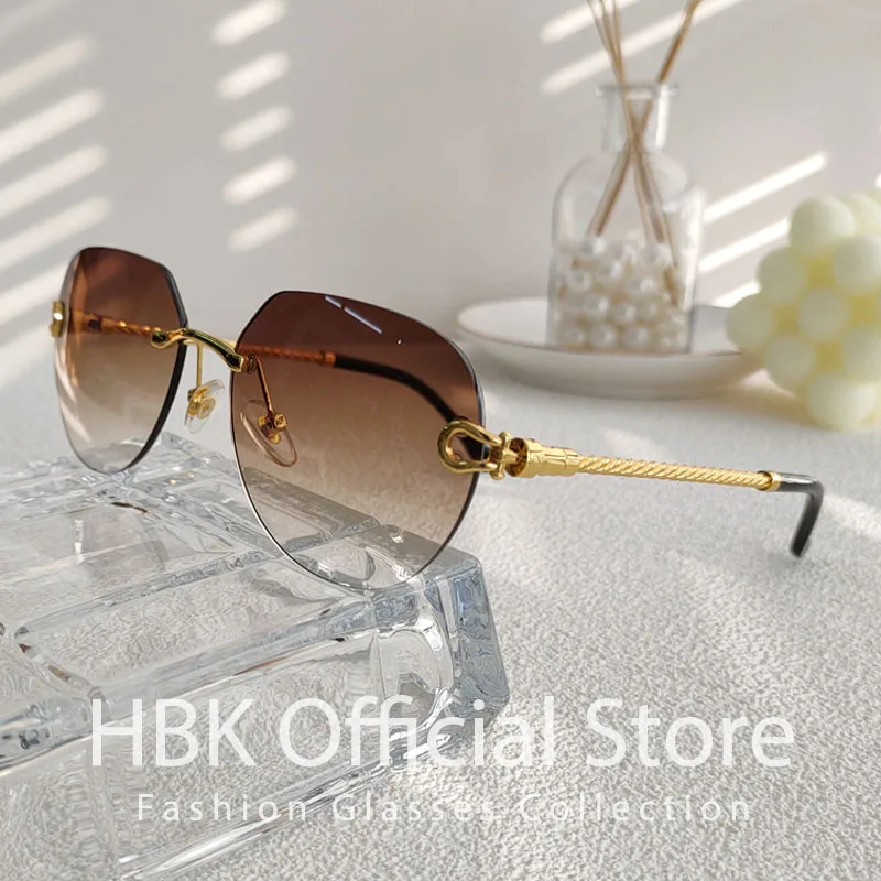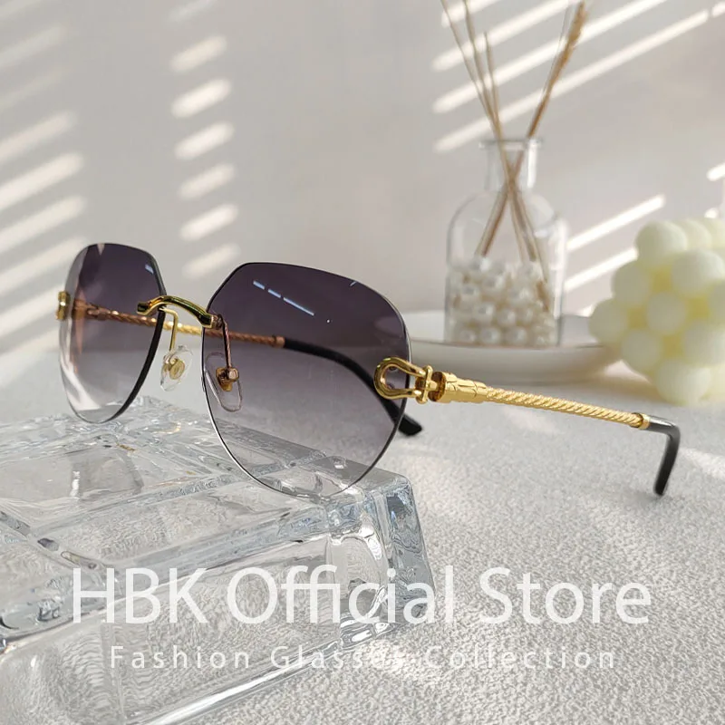 HBK 2023 New Pilot Rimless Sunglasses Women Men UV400 Gradient Lens Frameless Sun Glasses For Man Fashion Retro Shades Eyeglass