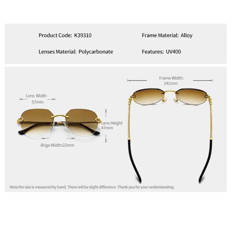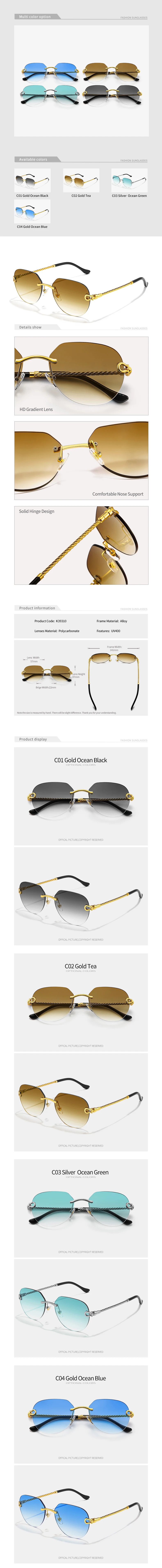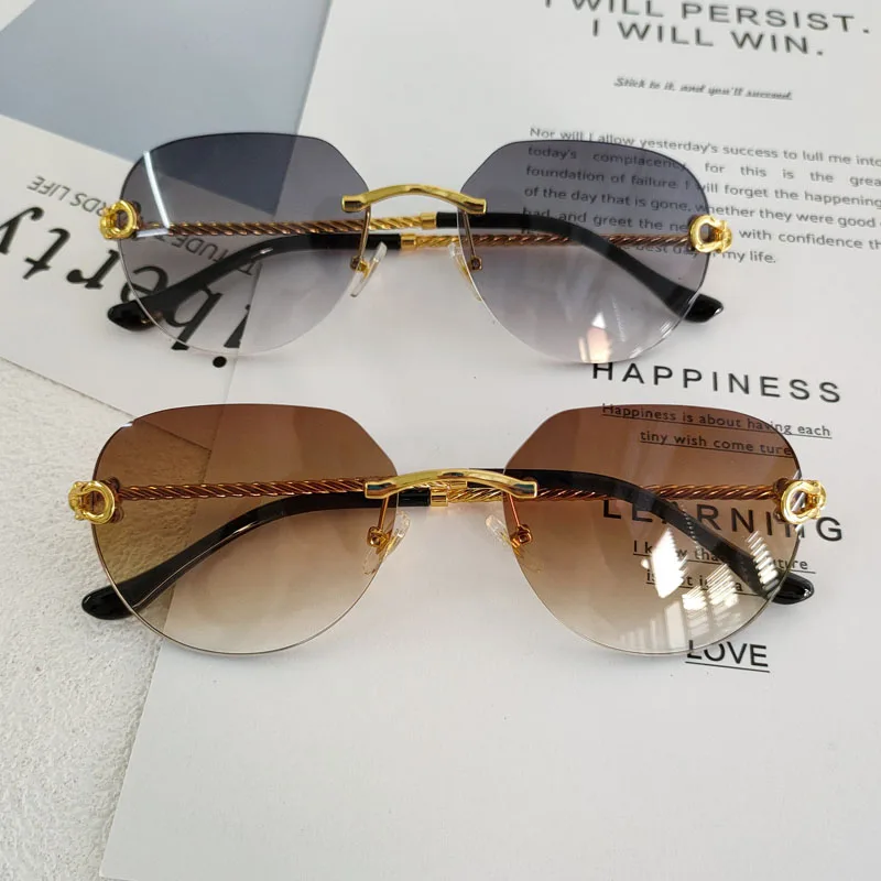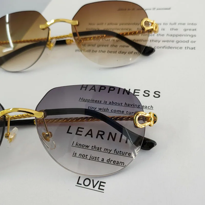 HBK 2023 New Pilot Rimless Sunglasses Women Men UV400 Gradient Lens Frameless Sun Glasses For Man Fashion Retro Shades Eyeglass