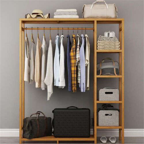 Heavy Bamboo Open Wardrobe Closet Garment Rack Clothing Hanging Organizer Shelve