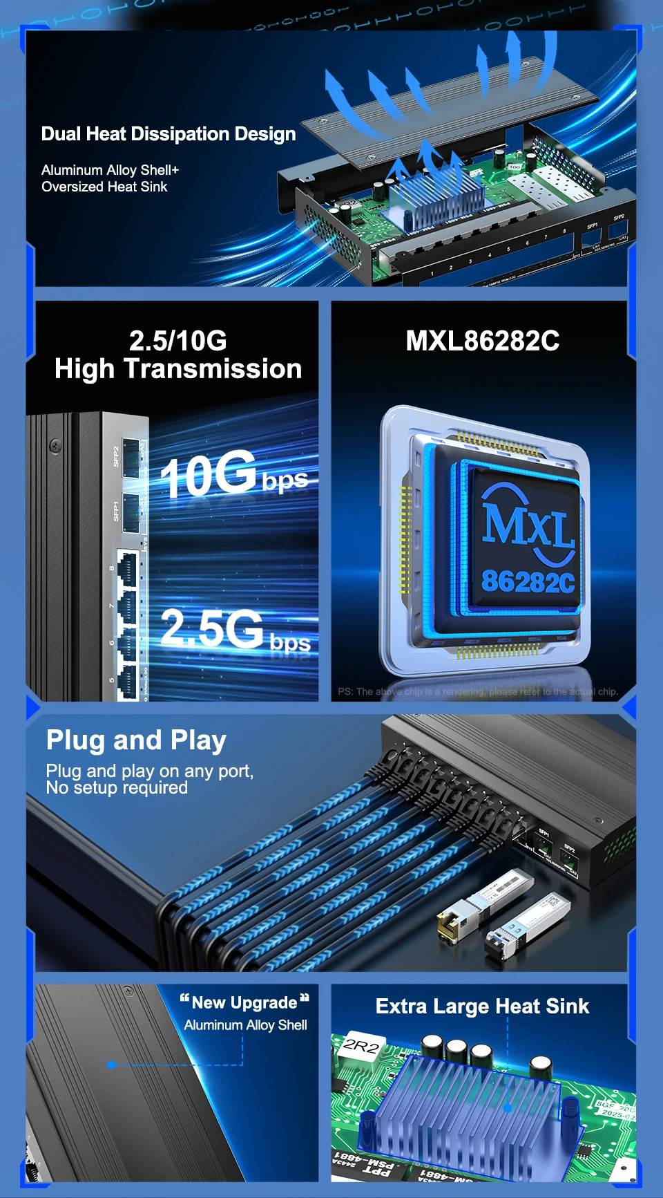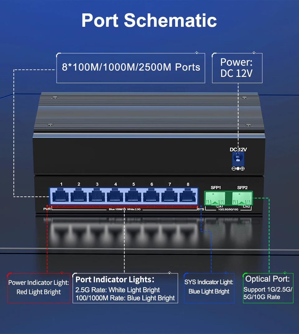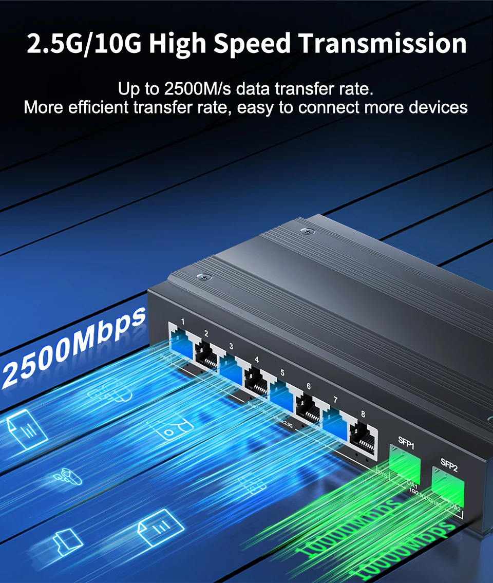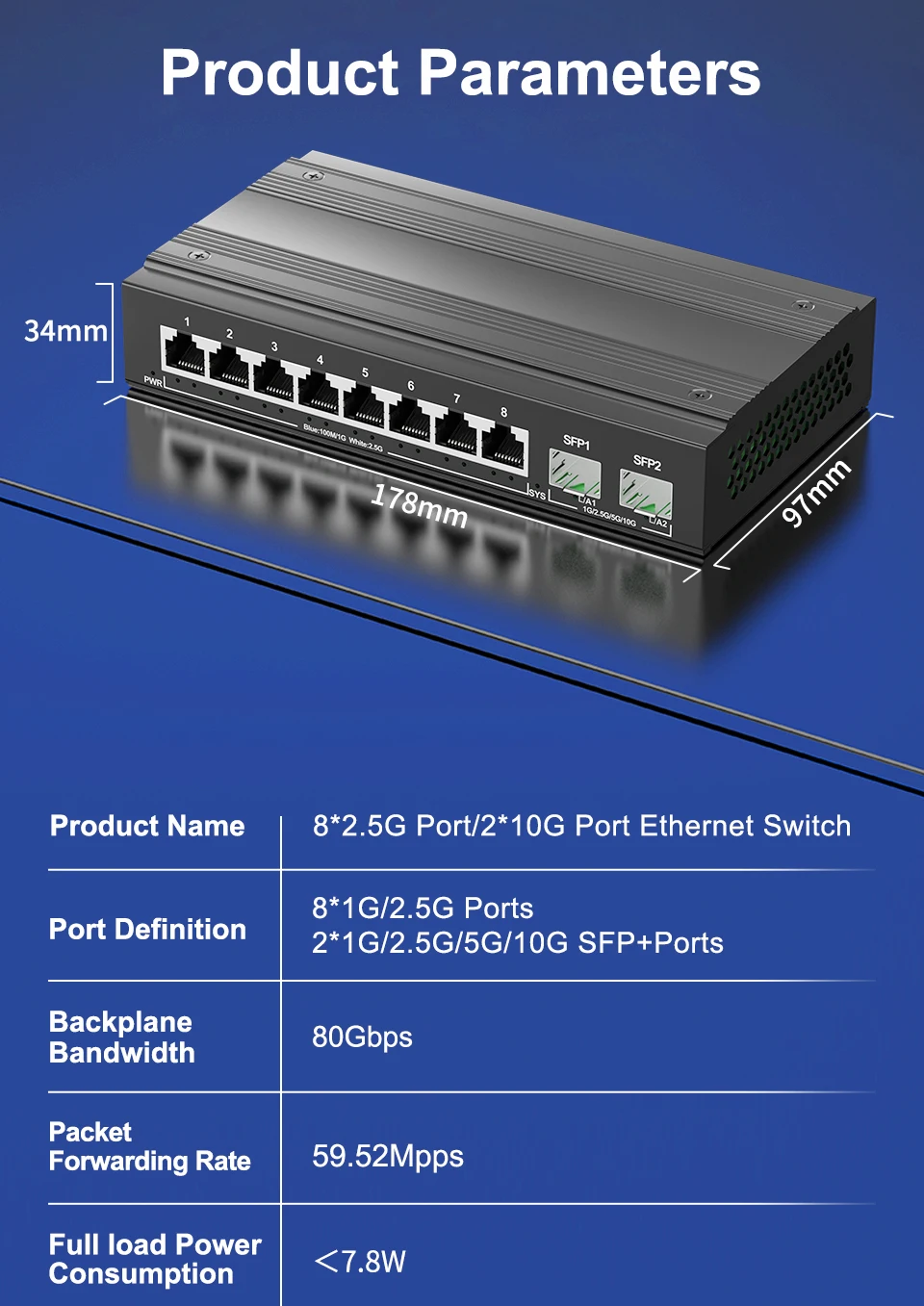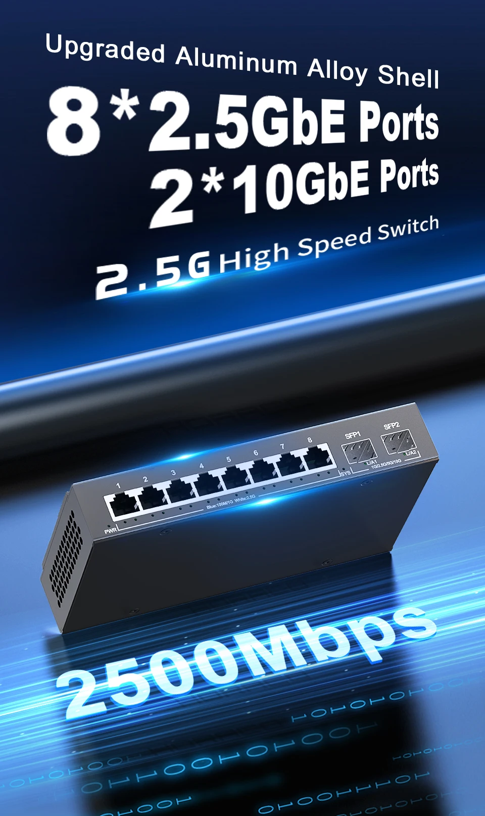 | Port | 8*2.5G RJ45 ports, 2*10G SFP ports |