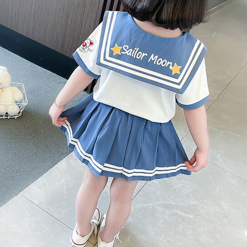 Kids Girls Clothes Sets Cartoon Bow T-Shirts Tops Pleated Skirts Suits Sailor Moon Cosplay Party Custume Children Clothes Sets