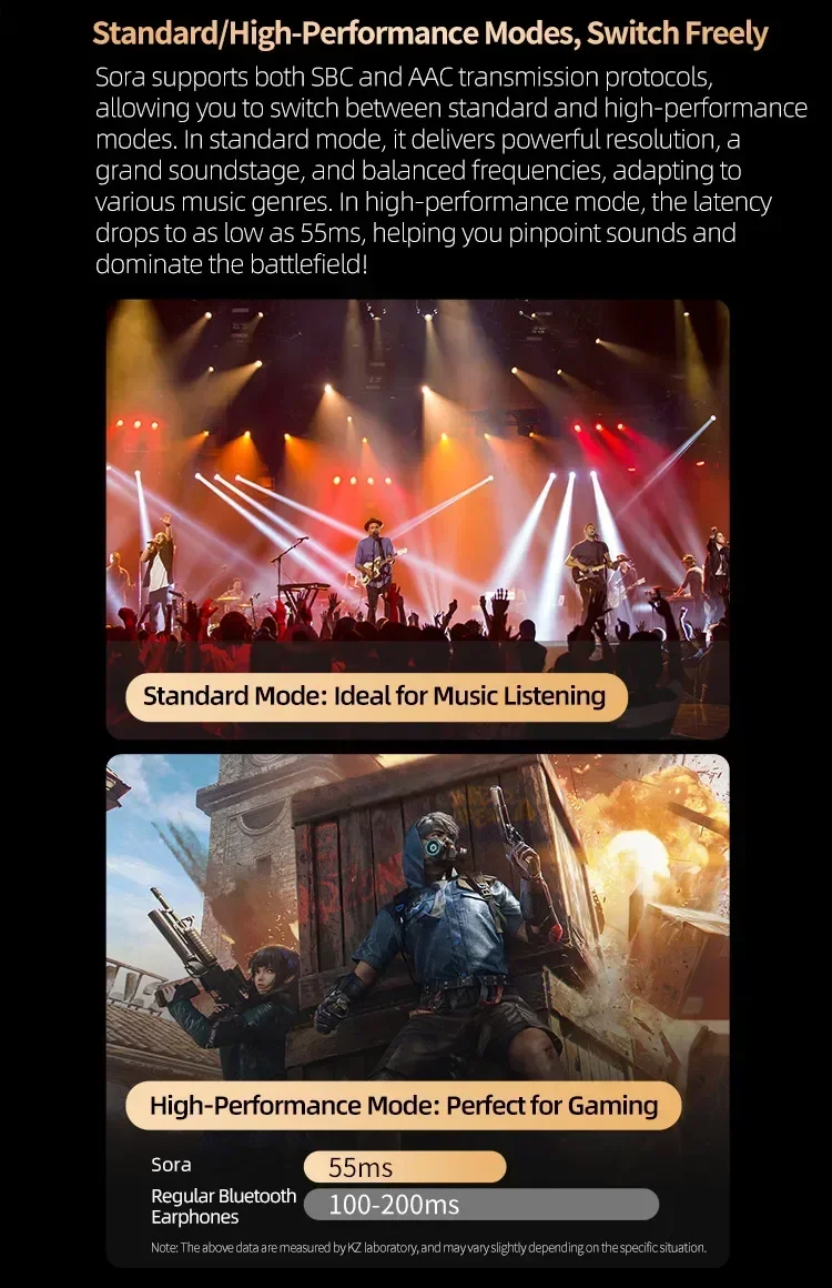 KZ Sora True Wireless Earphone Stereo TWS Bluetooth 5.4 Low Latency Earphones HiFi In-Ear Wireless Music Sports Earbuds Gamer