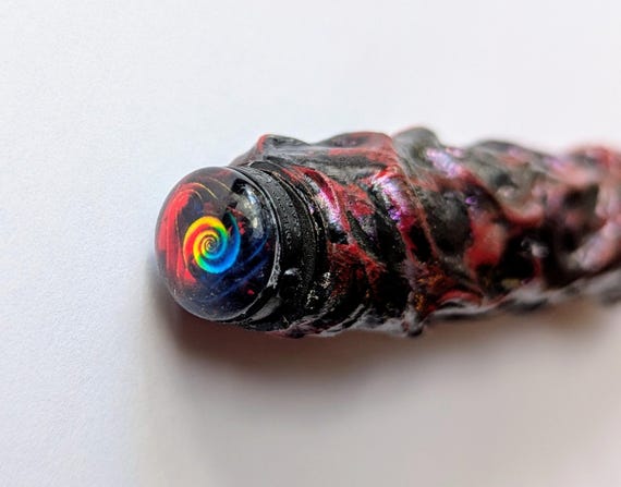 This stunning 11 1/2 inc laser wand sports a beautiful cats eye cabochon and is perfect for the teacher or lecturer who wants to get their students’ attention with a little magic! Also great for entertaining your favorite feline. Black with copper highlights, 11/2 Inches. Comes in a black satin carrying bag and includes a starter spell scroll and instruction for changing the battery!