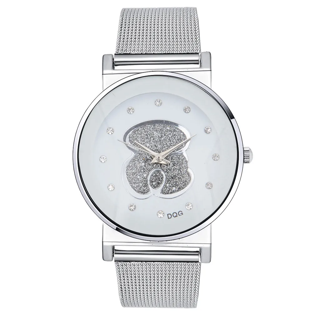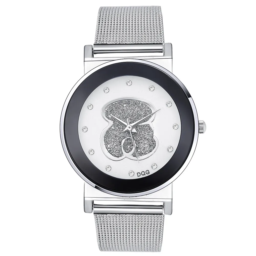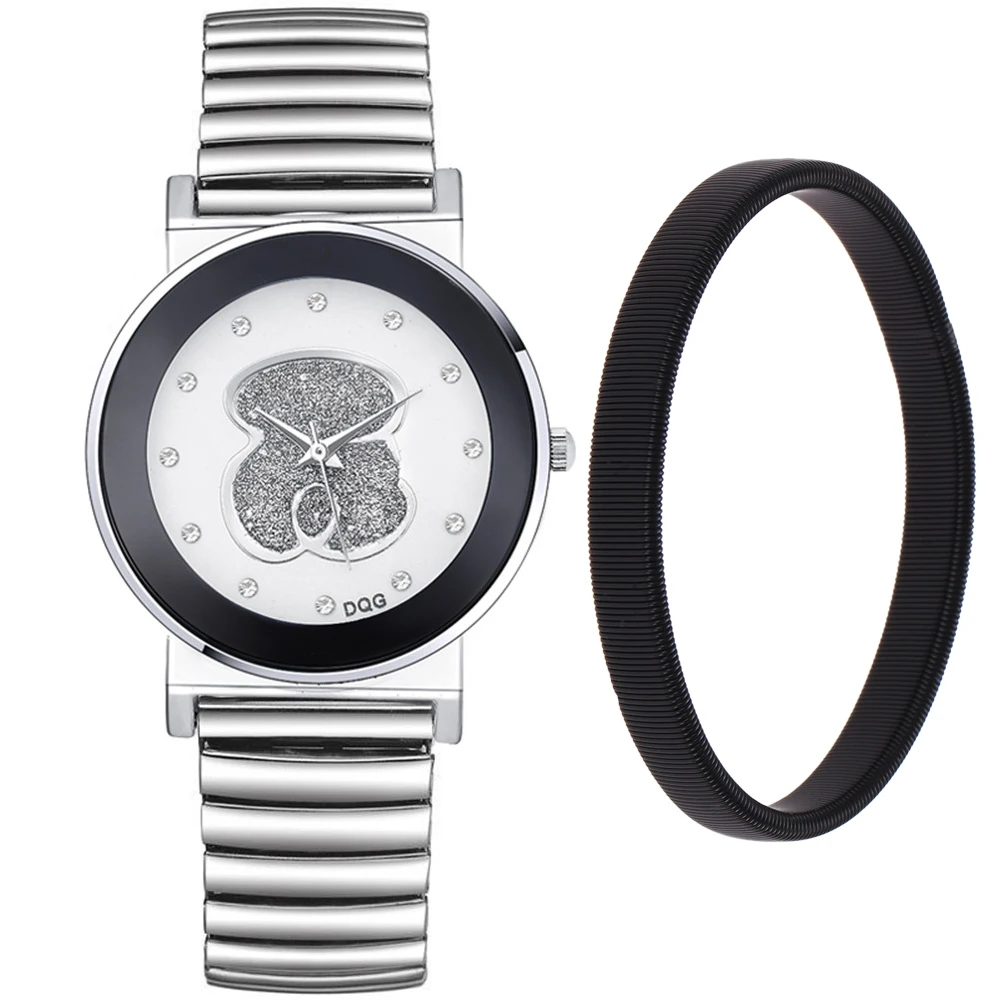 Luxury Brand Ladies Black White Bear Diamond Simple Design Quartz Watch Fashion Stretch Women Dress Clock Creative Watches