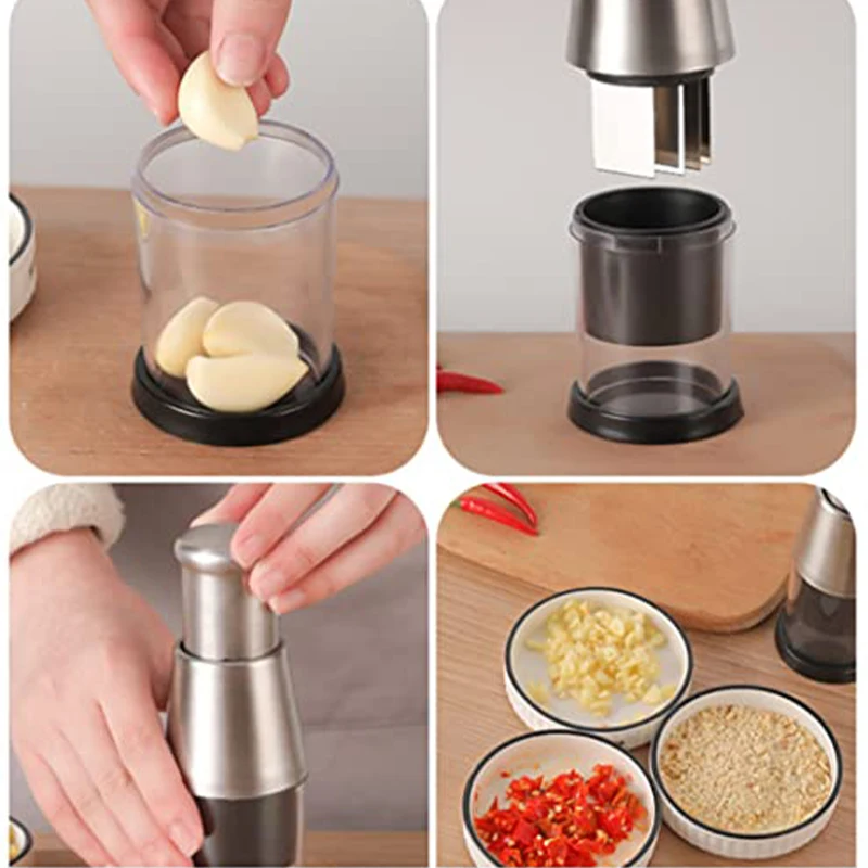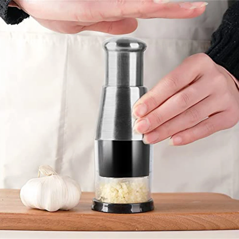 Manual Garlic Chopper Stainless Steel Handheld Garlic Masher Food Chopper Slicer Vegetable Cooking Crusher Kitchen Accessories