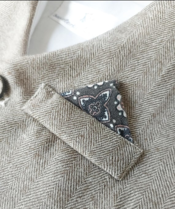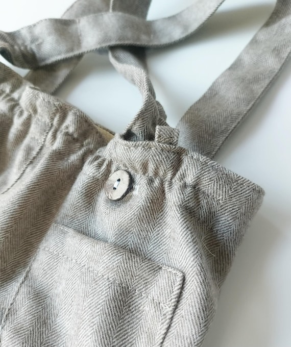 * 100% MERINO Woolen Beige herringbone pants. Elegant, classic. Long leg. Lovely wooden coconut buttons. Suspenders, two pockets, elastic in the pants at the back