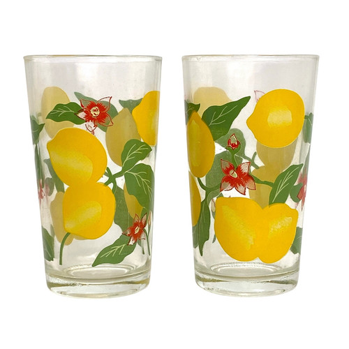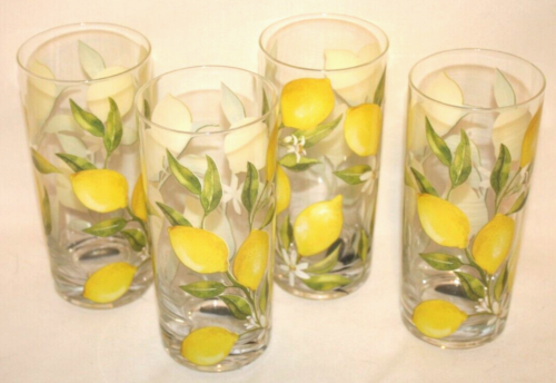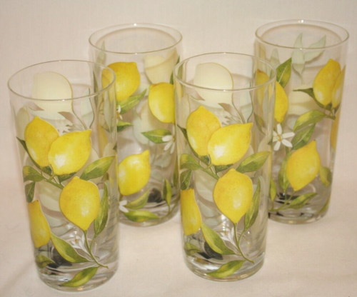 Mikasa Lemons Tall 15.5 Oz Floral Drinking Glasses Set of Four New